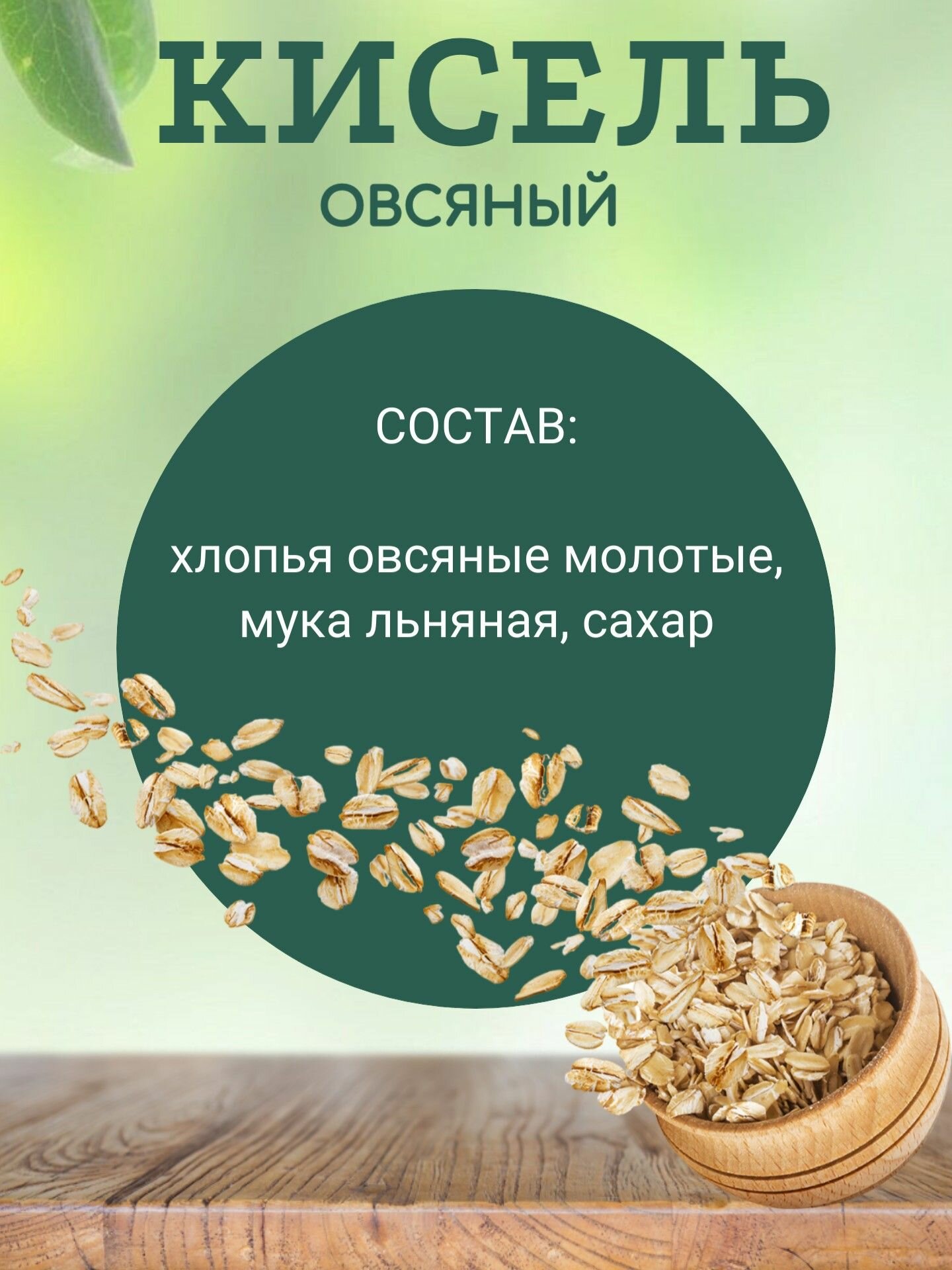 | Состав | хлопья овсяные молотые, мука льняная, сахар |