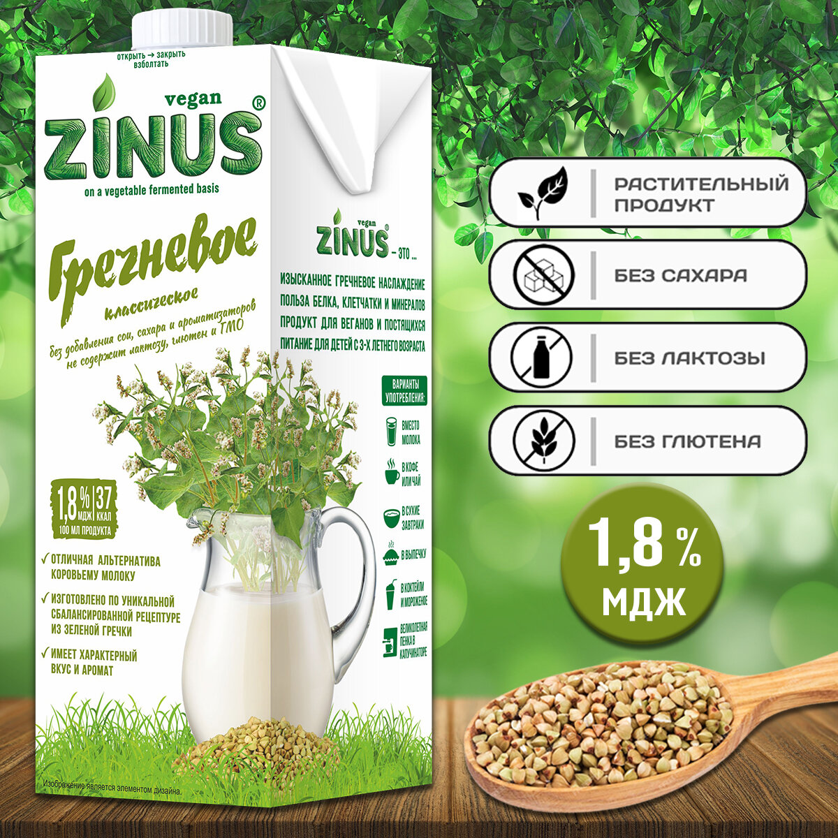 Молоко гречневое "ZINUS" 1л информация: