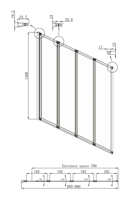 Стеклянная шторка для ванной со складывающимися во внутрь дверями Ambassador Bath Screen 16041110R: правосторонняя ширма для ванны 90 см