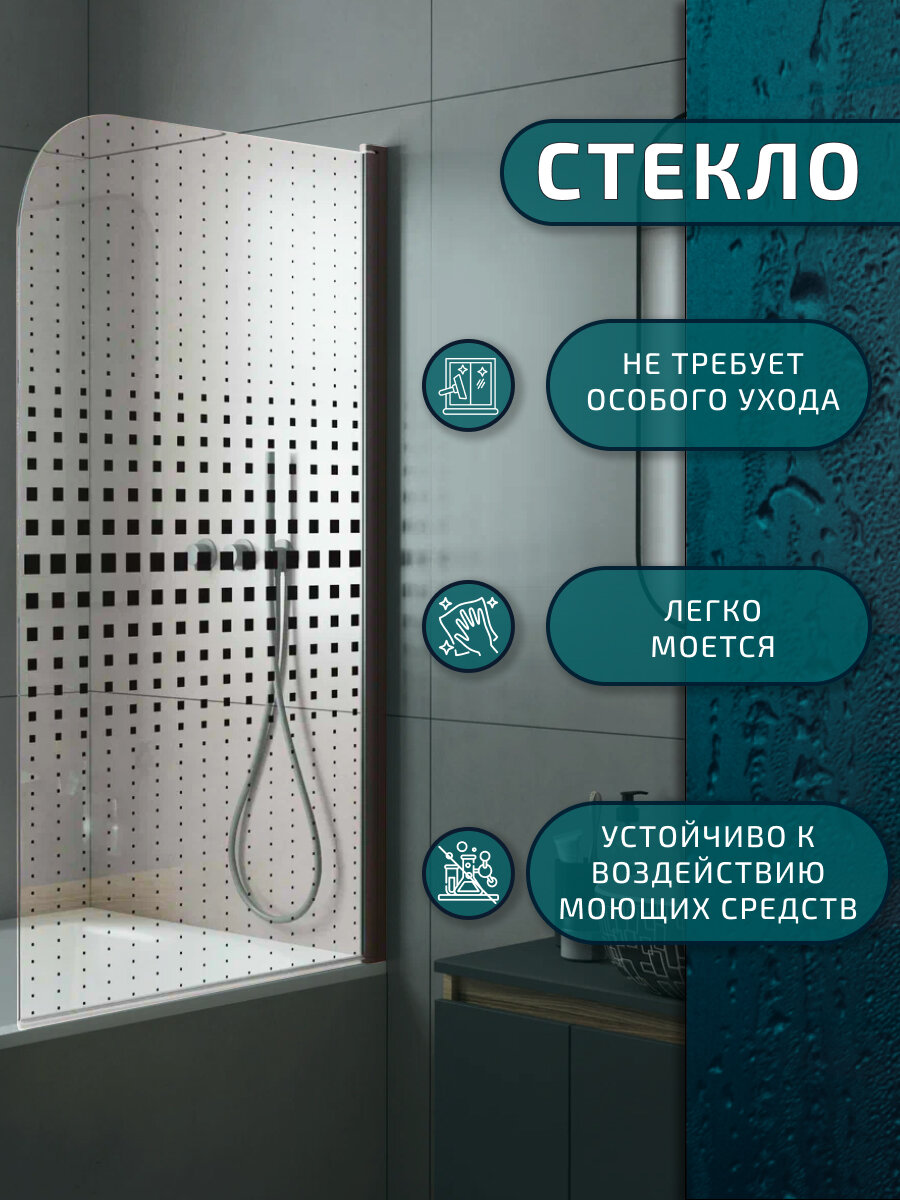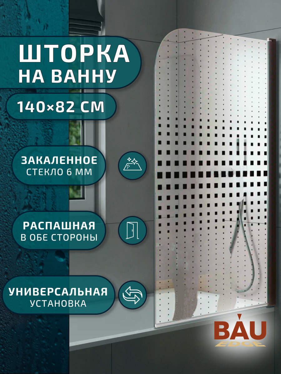 Отзывы на Шторка на ванну BAU Dream поворотная 140x80, прозрачное закаленное стекло 6 мм с черная мозаика, черный матовый профиль