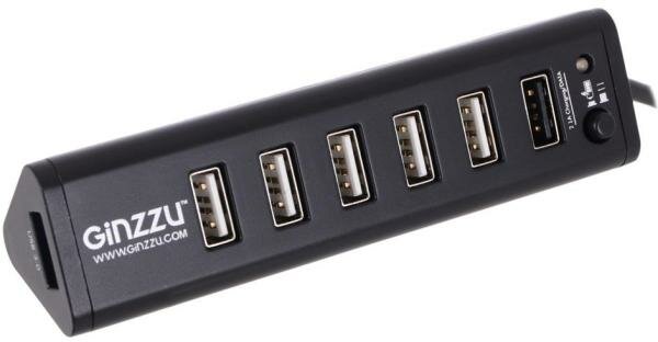 Разветвитель USB GiNZZU Gr-315uab 7 портов (1xUSB 3.0 + 6xUSB 2.0 + адаптер) черный