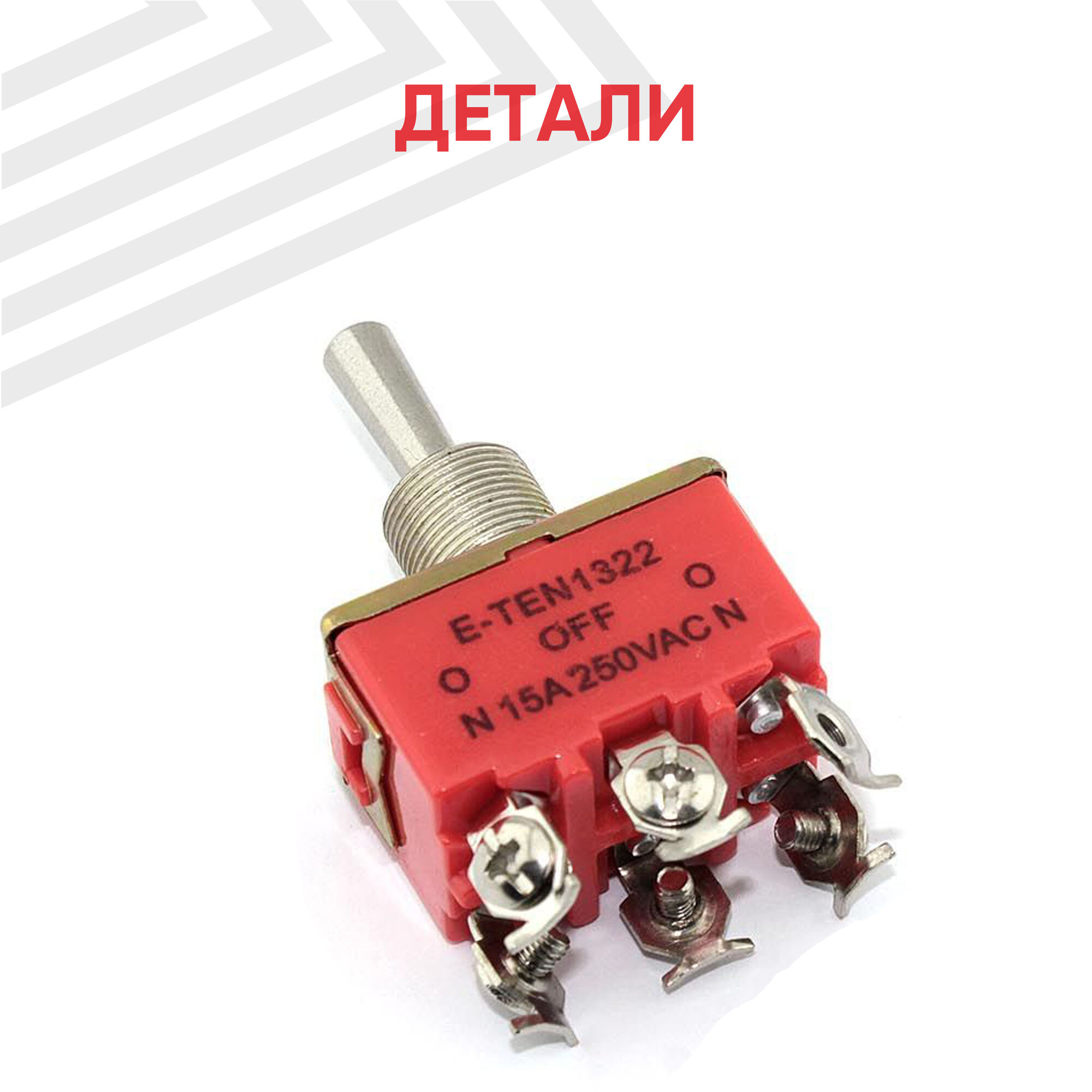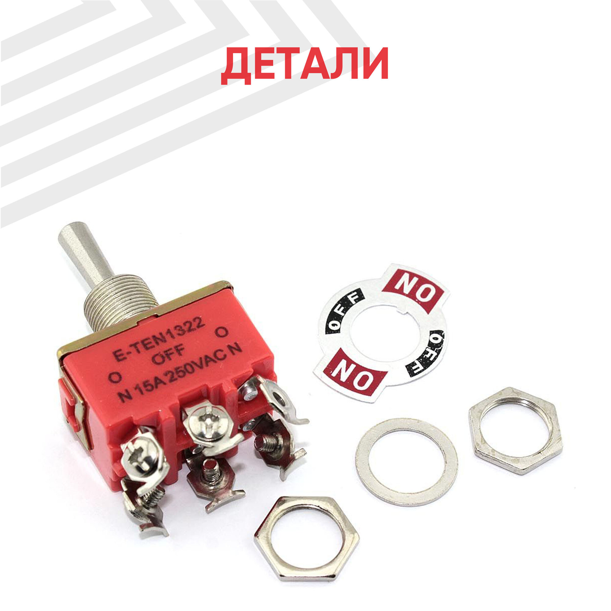 Тумблер E-TEN1322, 250В, 15А, 6 контактов, клеммы под винт, ON-OFF-ON информация: