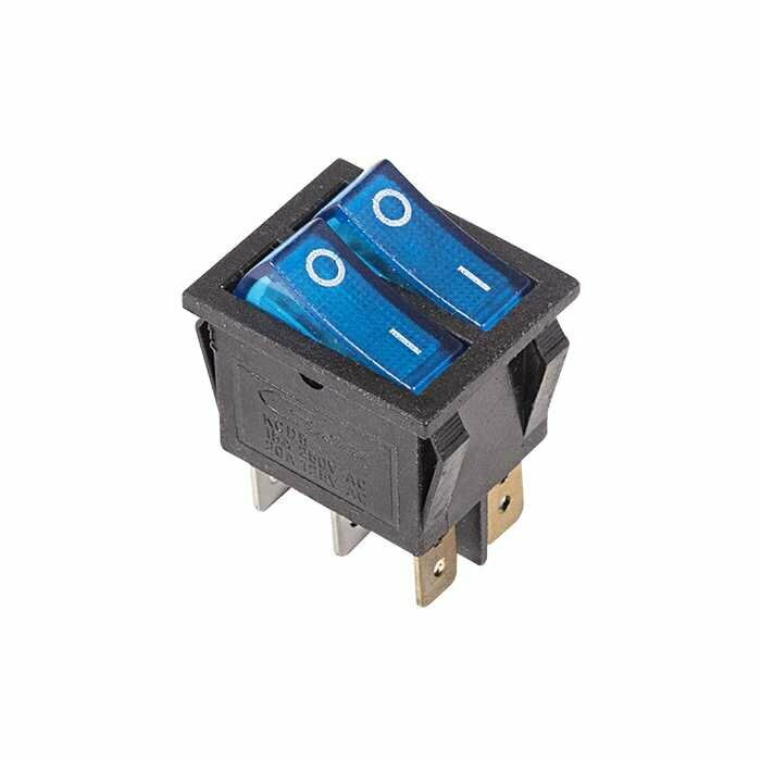 Двойной выключатель клавишный Rexant ON-OFF синий с подсветкой (250В 15А (6с)) {36-2411} информация: