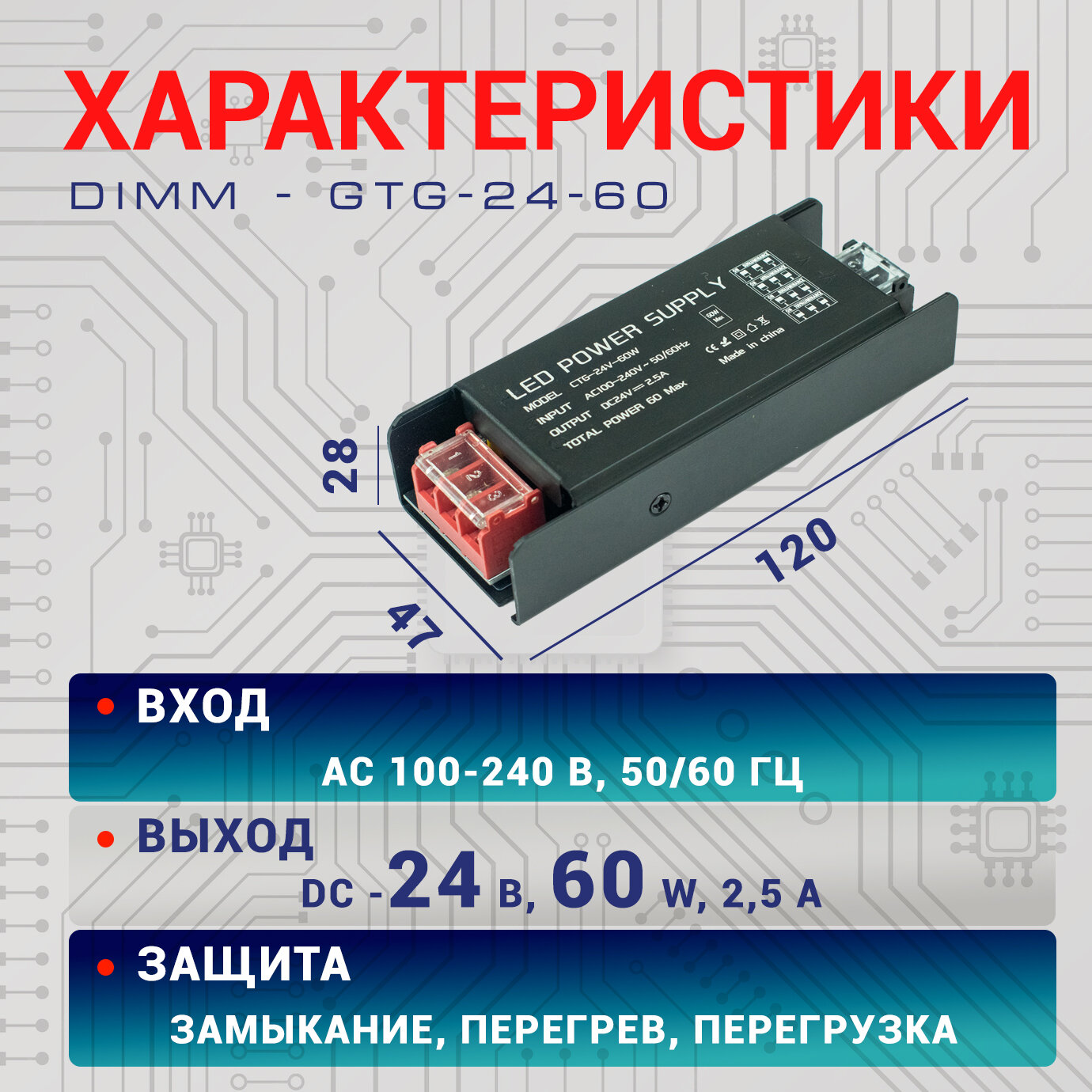 Диммируемый блок питания Led-Book Dimm 24V 60W информация: