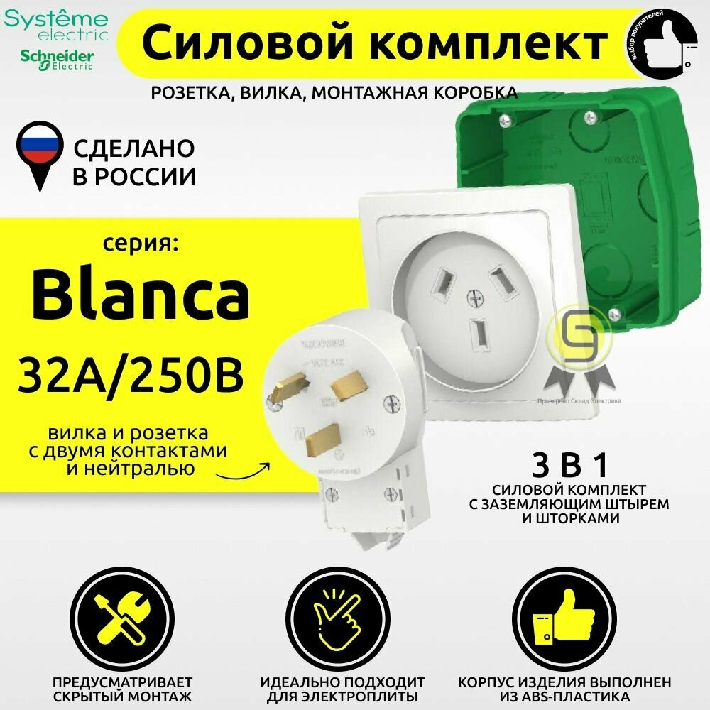 Отзывы на Силовой комплект розетка вилка с подразетником Schneider Electric/Systeme Electric Blanca 32А скрытой установки белый шнайдер BLNSK013231