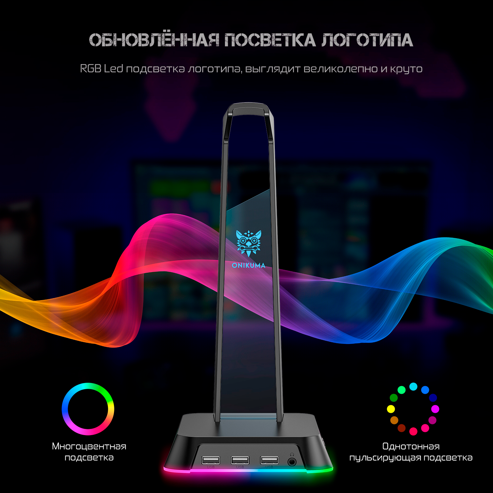 Подставка для наушников черная ONIKUMA ST-02 Oni Black c RGB подсветкой информация: