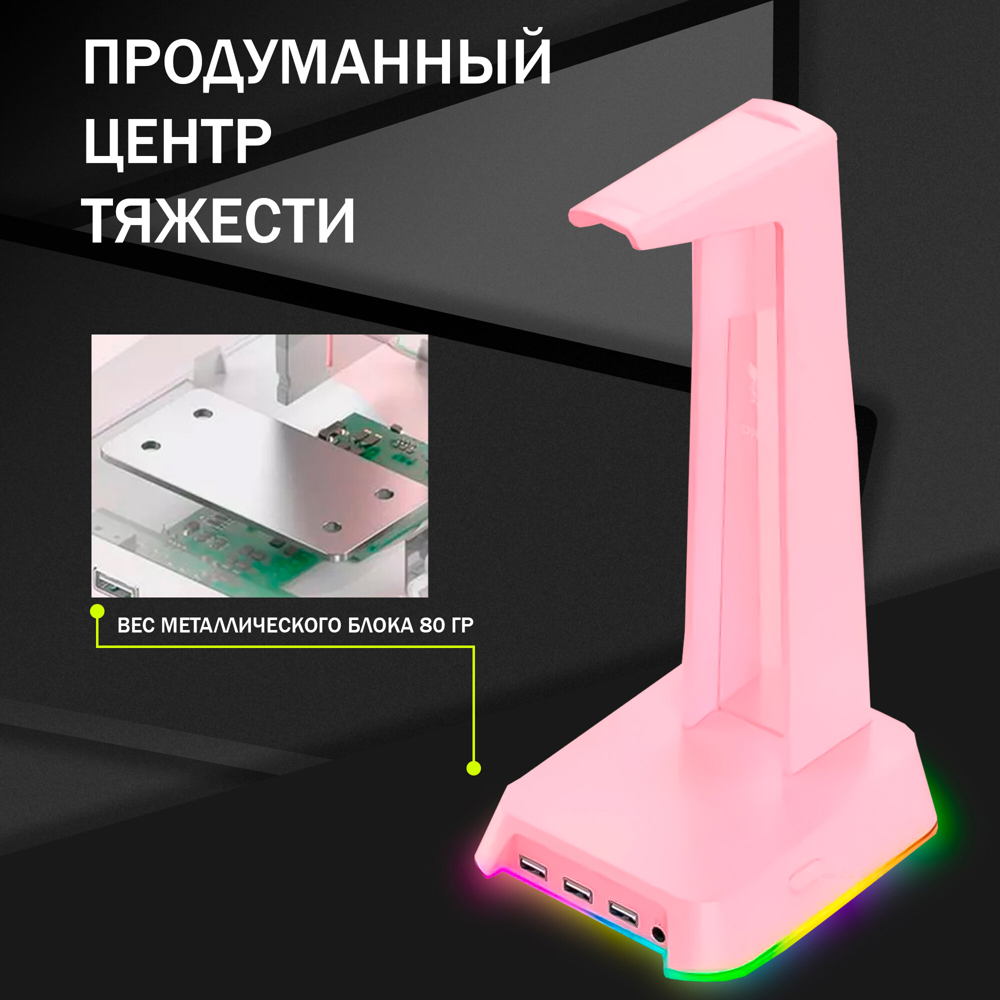 Подставка для наушников розовая ONIKUMA ST-02 Oni Pink c RGB подсветкой информация: