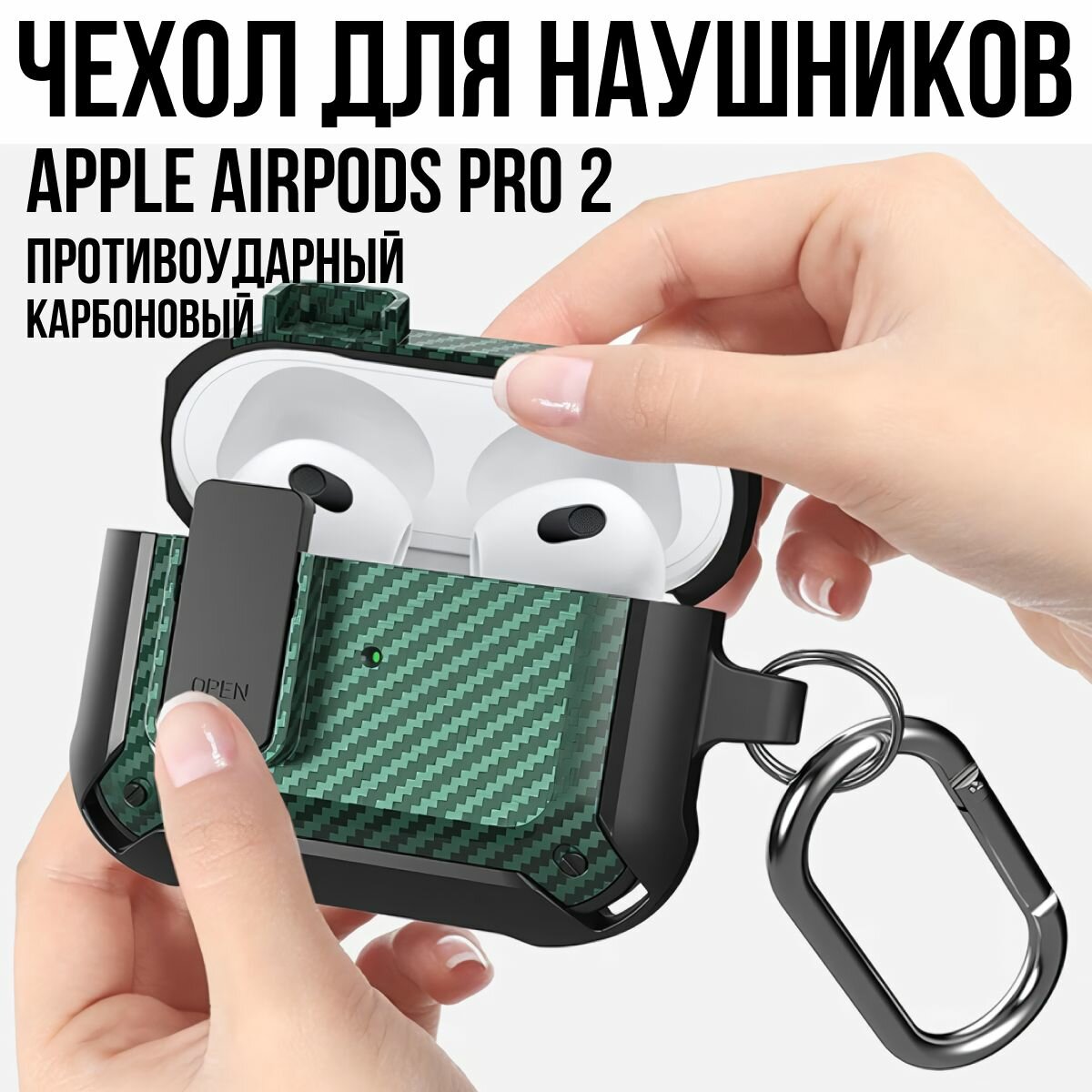 Отзывы на Чехол для наушников Airpods Pro и Airpods Pro 2 противоударный зелёный / Чехол для наушников аирподс про и аирподс про 2 усиленный карбон