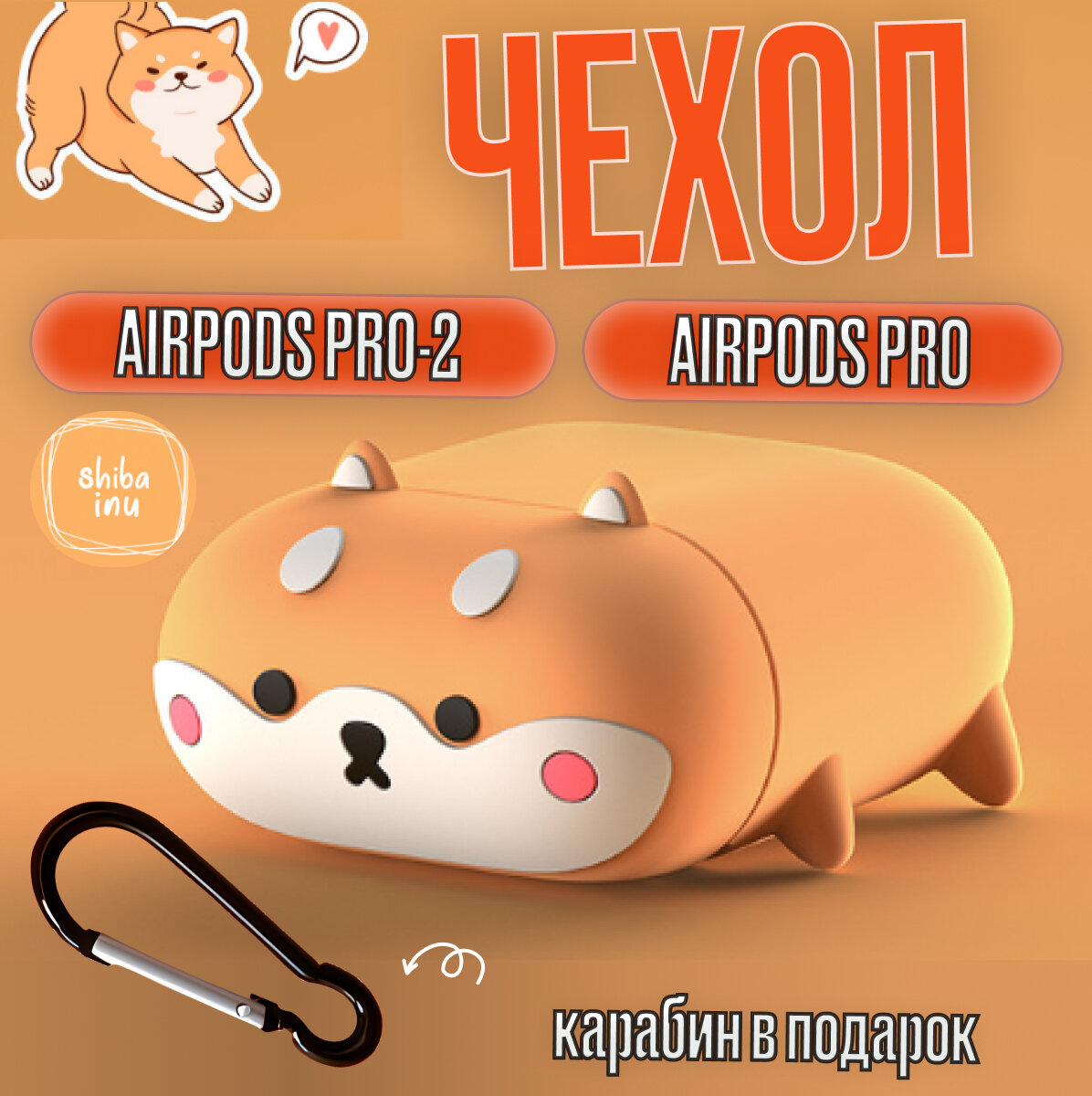 Отзывы на Чехол для наушников Airpods Pro и Airpods Pro 2/ Чехол для наушников аирподс про и аирподс про 2 собачка с карабином