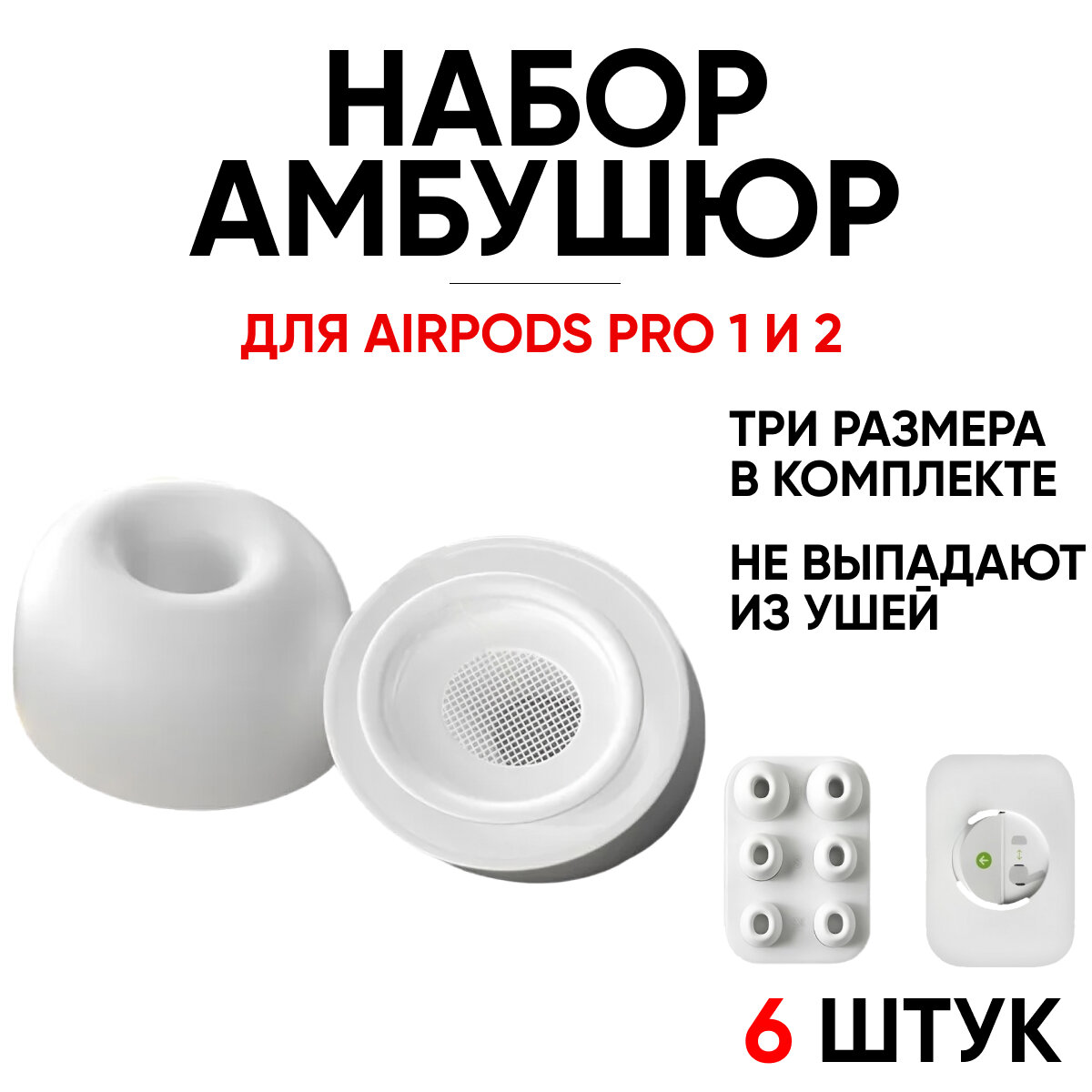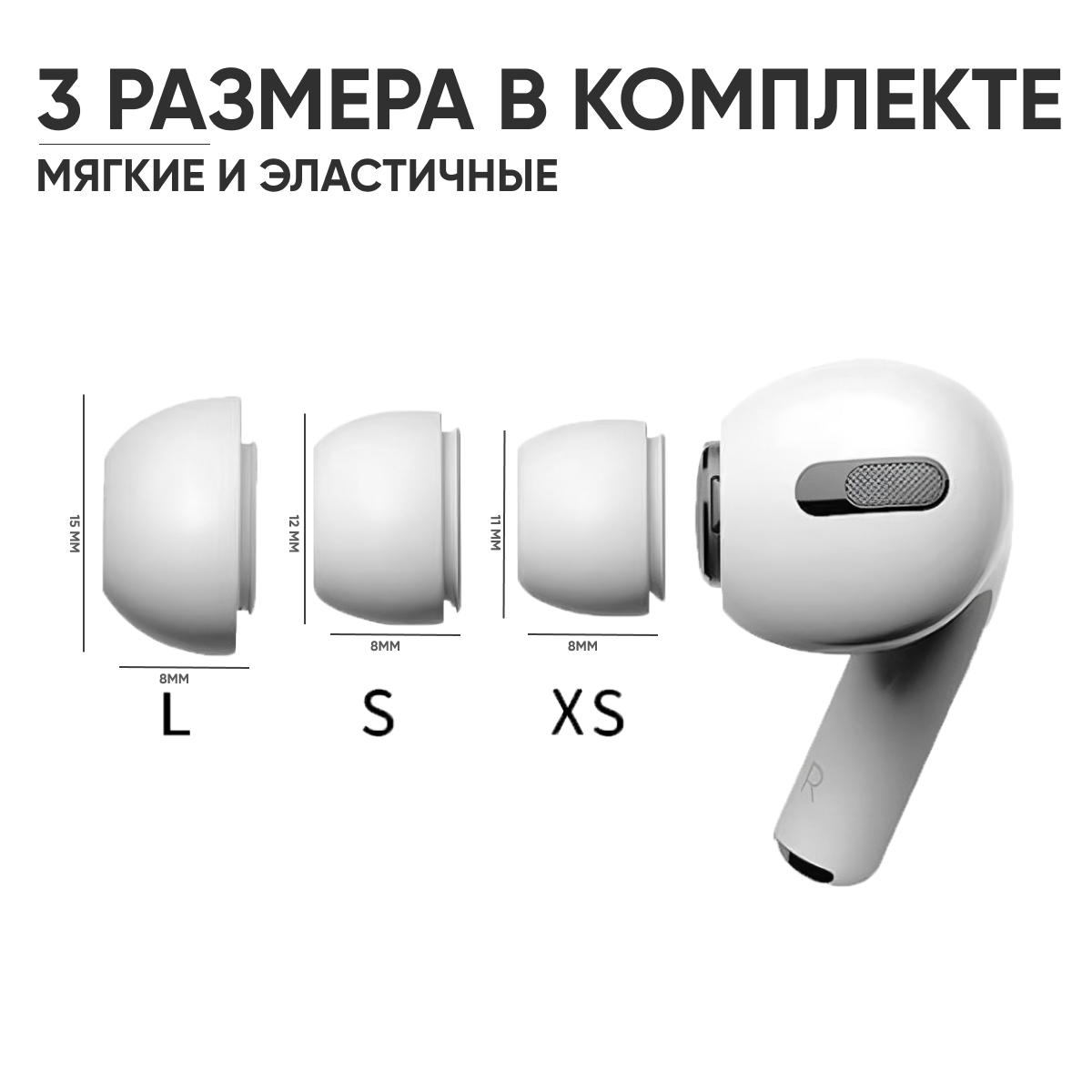 Набор амбушюр для наушников Apple Airpods Pro (Аирподс Про) - L, S, XS информация: