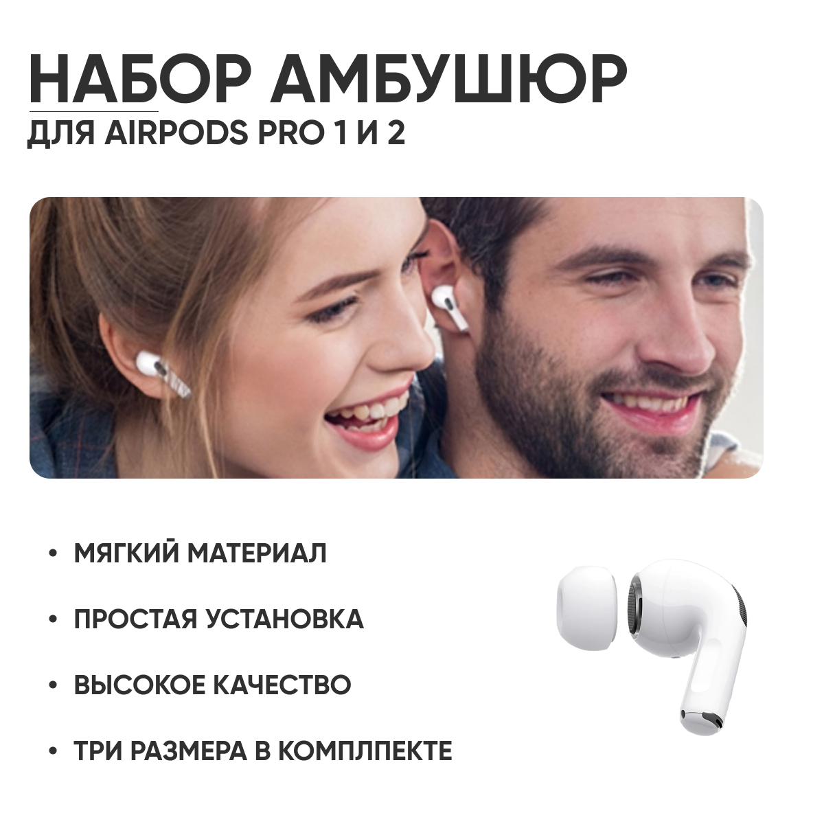 Отзывы на Набор амбушюр для наушников Apple Airpods Pro (Аирподс Про) - L, S, XS