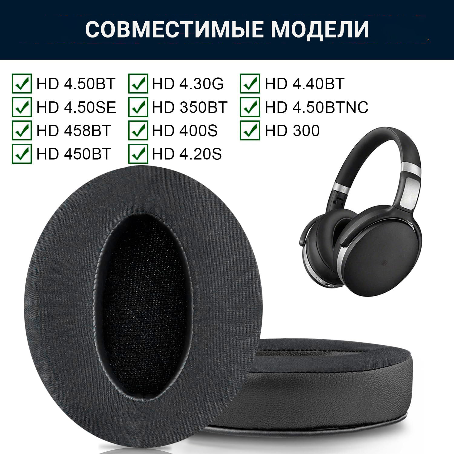 | Совместимые модели наушников | Sennheiser HD 300, Sennheiser HD 350BT, Sennheiser HD 4.20s, Sennheiser HD 4.30G, Sennheiser HD 4.30i, Sennheiser HD 4.40 BT, Sennheiser HD 4.50 BTNC, Sennheiser HD 4.50R, Sennheiser HD 450BT, Sennheiser HD 458 BT |