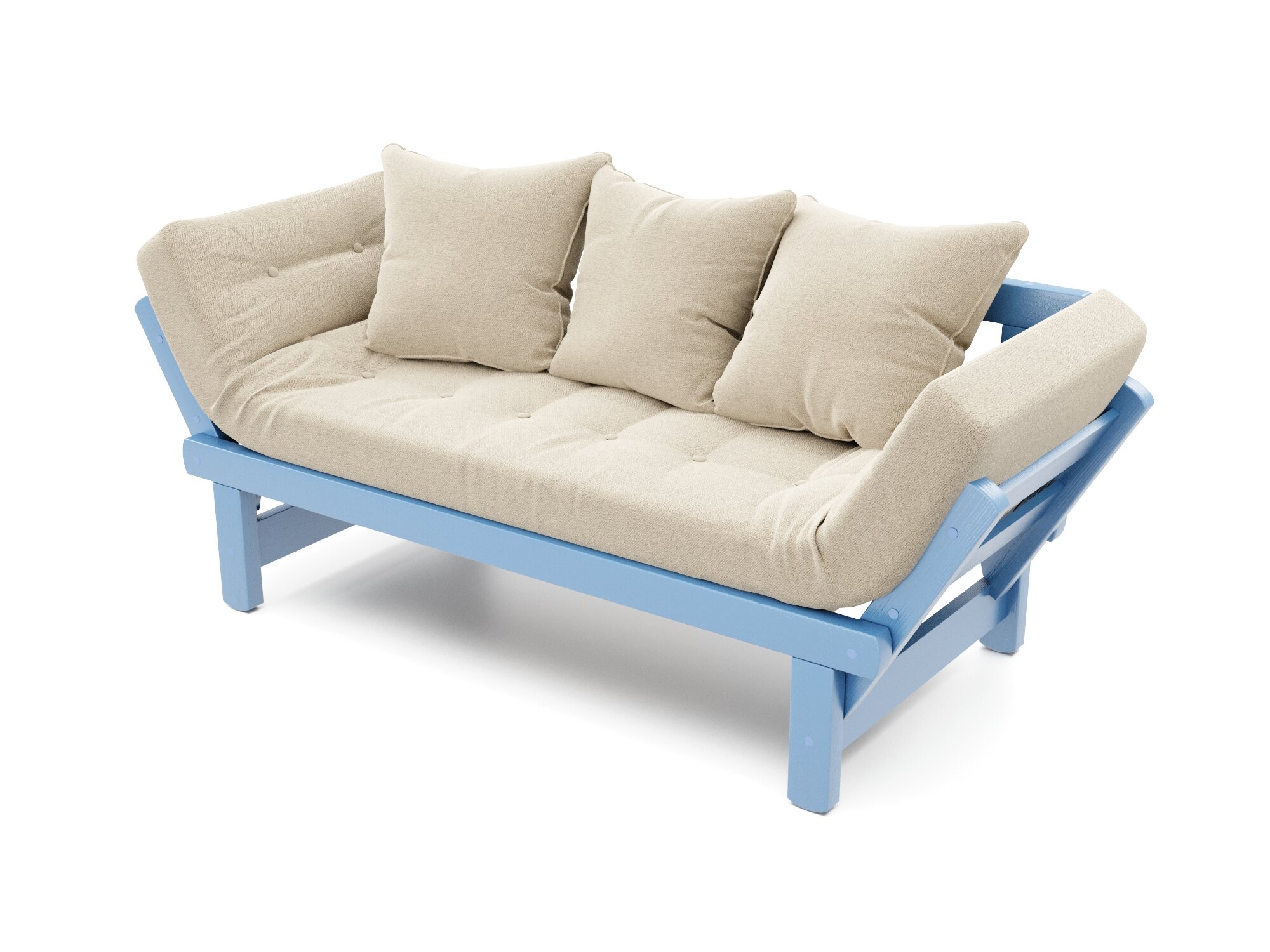 10 цен на Садовый диван Soft Element Эльф-С, бежевый-голубой, массив дерева, раскладные подлокотники, рогожка, на террасу, на веранду, для дачи, для бани