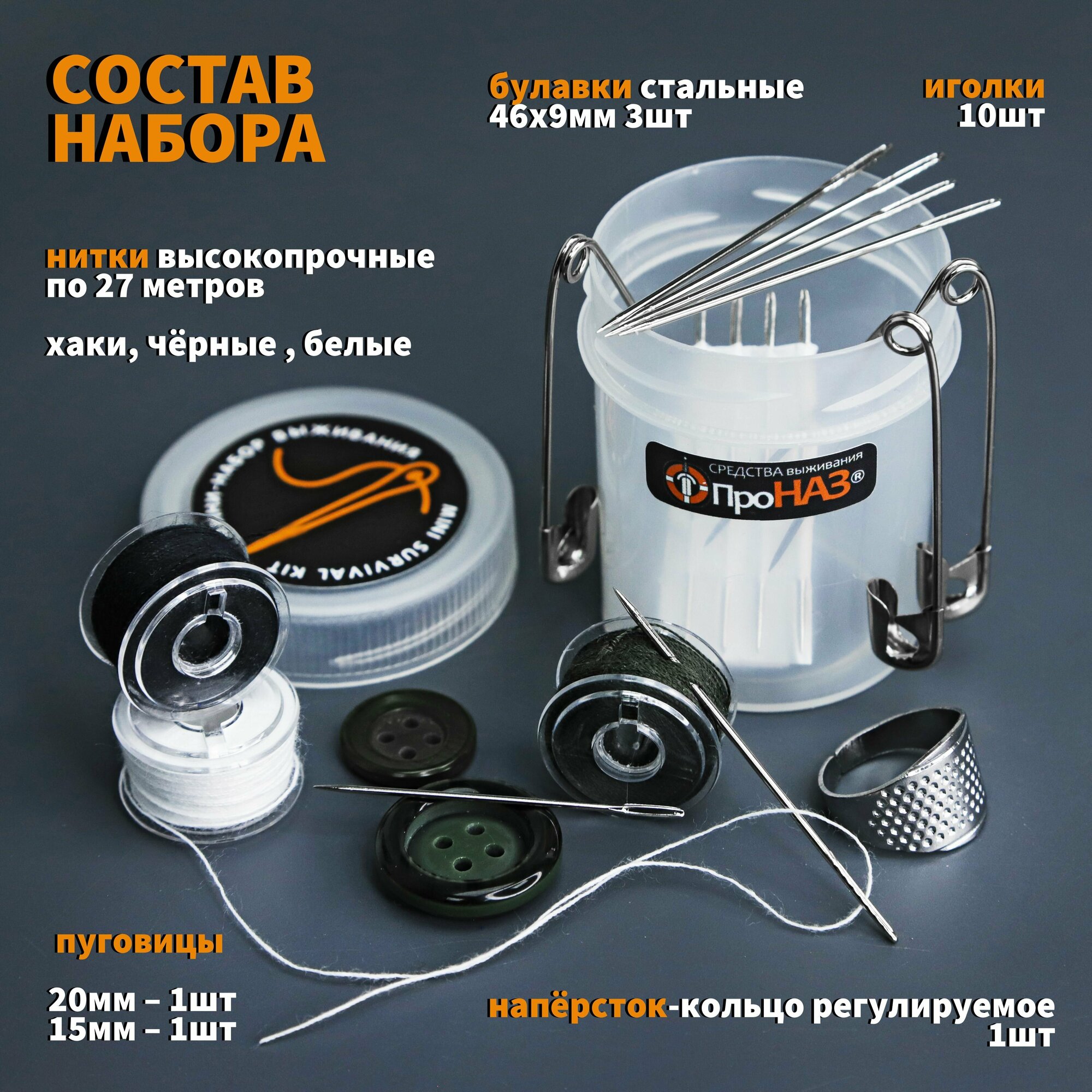 10 цен на Хознабор армейский в защитной тубе IP68 ПроНАЗ, военный и походный швейный хозпакет / Набор для шитья 1 шт.