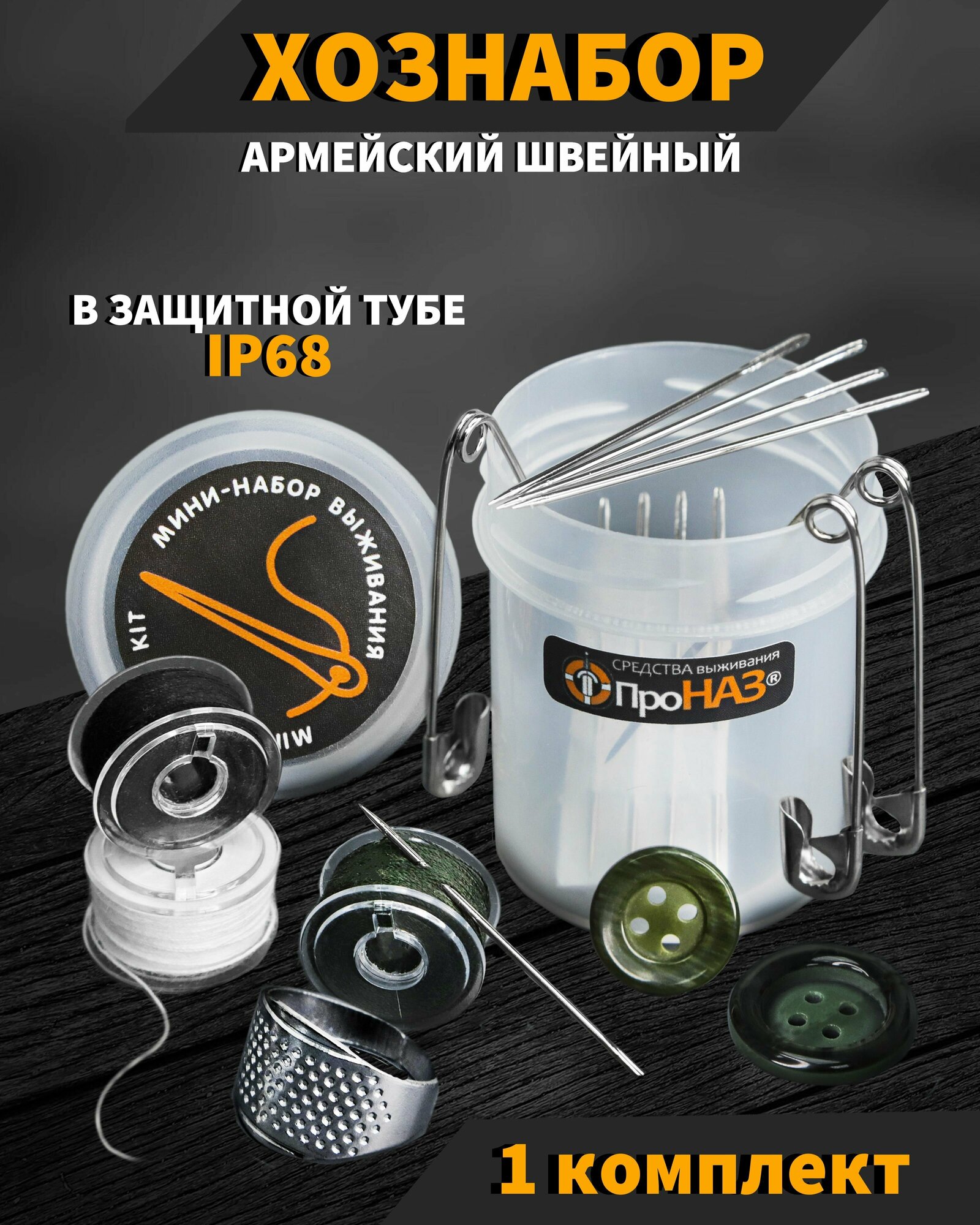 Хознабор армейский в защитной тубе IP68 ПроНАЗ, военный и походный швейный хозпакет / Набор для шитья 1 шт. информация: