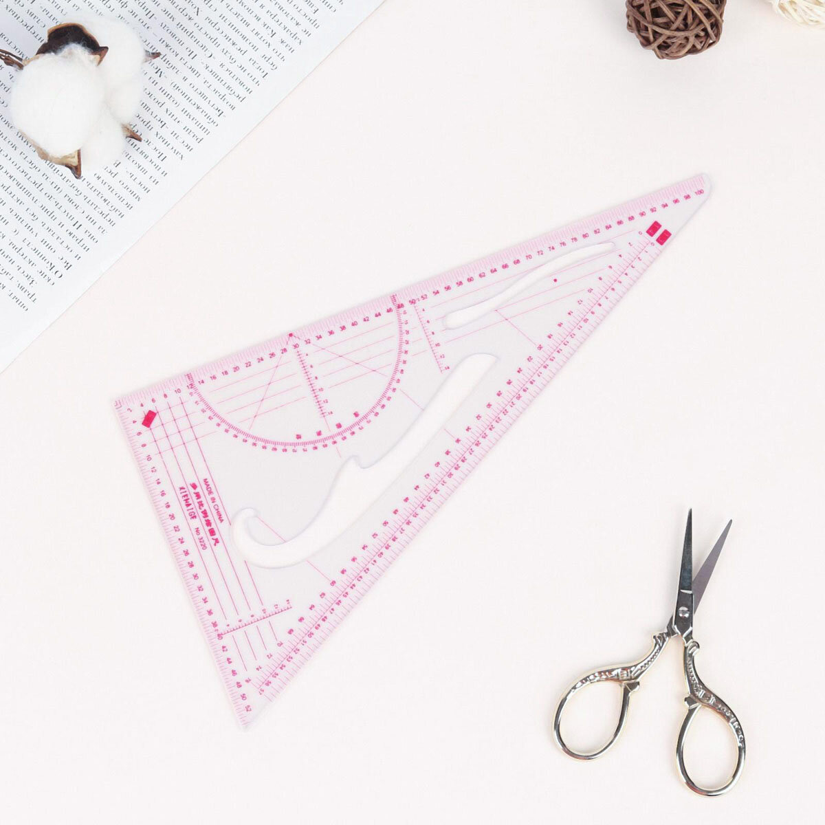 Лекало портновское для раскроя метрическое, треугольник, 20,5*11 см, прозрачное информация: