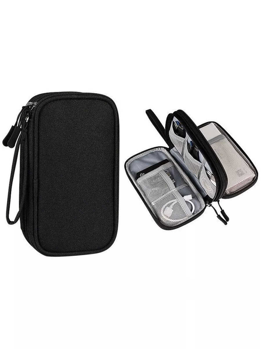 10 цен на Органайзер для проводов и зарядок, сумочка для проводов и мелочей, кейс для шнуров, черный