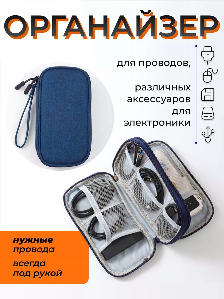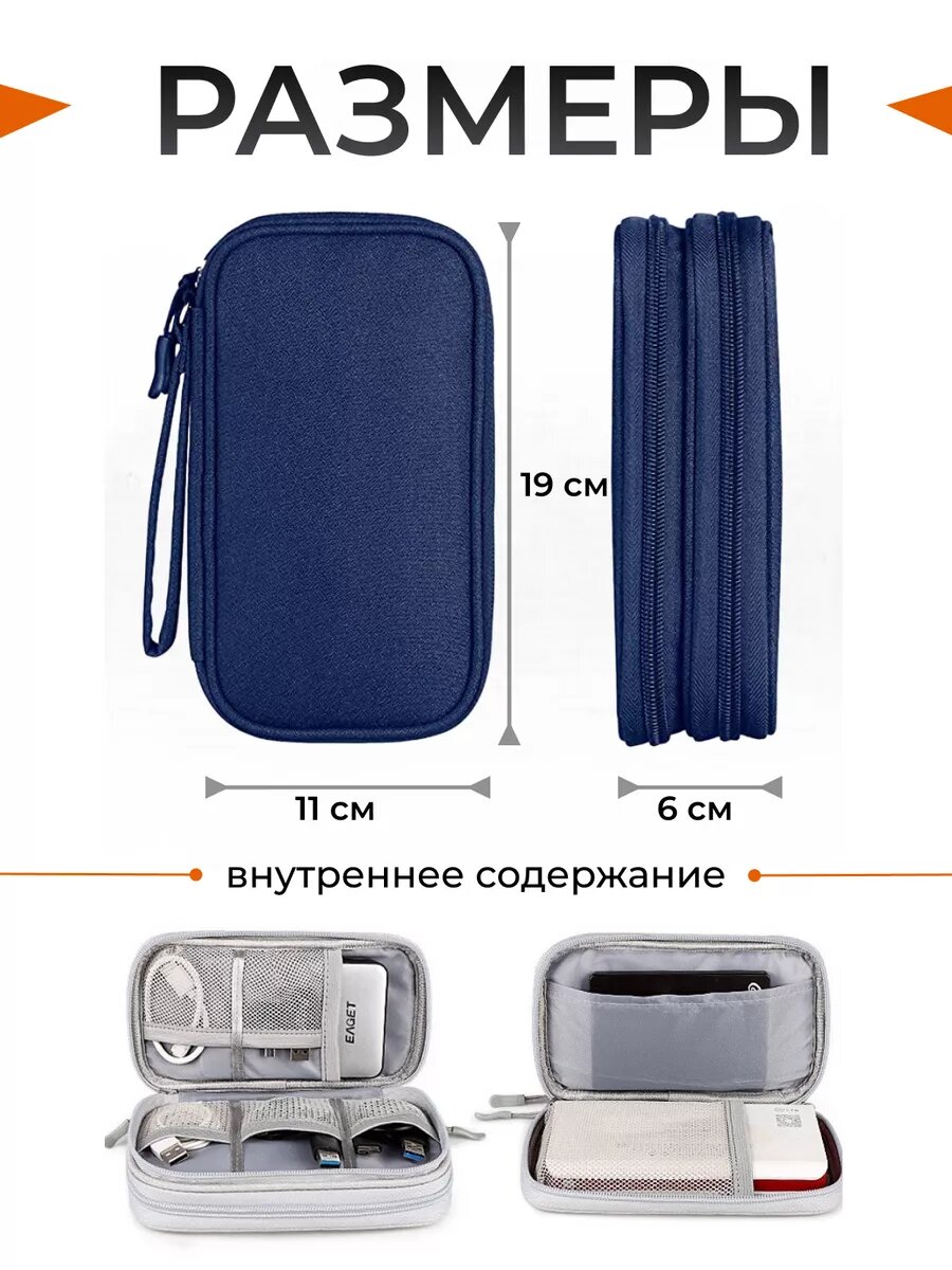 Органайзер для проводов и зарядок, сумочка для проводов и мелочей, кейс для шнуров, темно-синий информация: