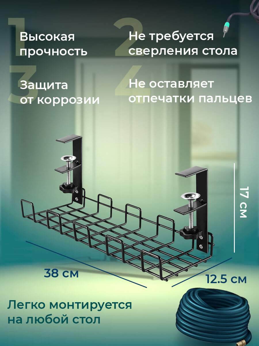 Полка органайзер для проводов и офисных аксессуаров / держатель для кабелей / решетка черный информация: