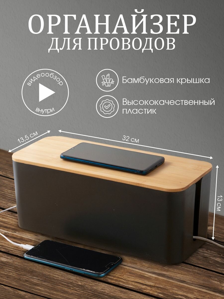 Органайзер для проводов с бамбуковой крышкой (Черный) информация: