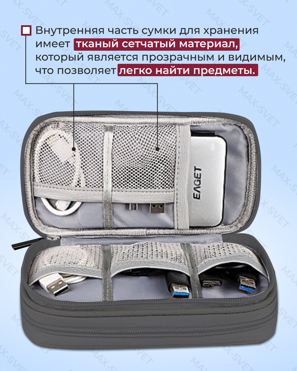 Сумка органайзер для проводов, зарядок, аксессуаров, цвет бело-серый (MAXSVETSHOP) 949 ₽