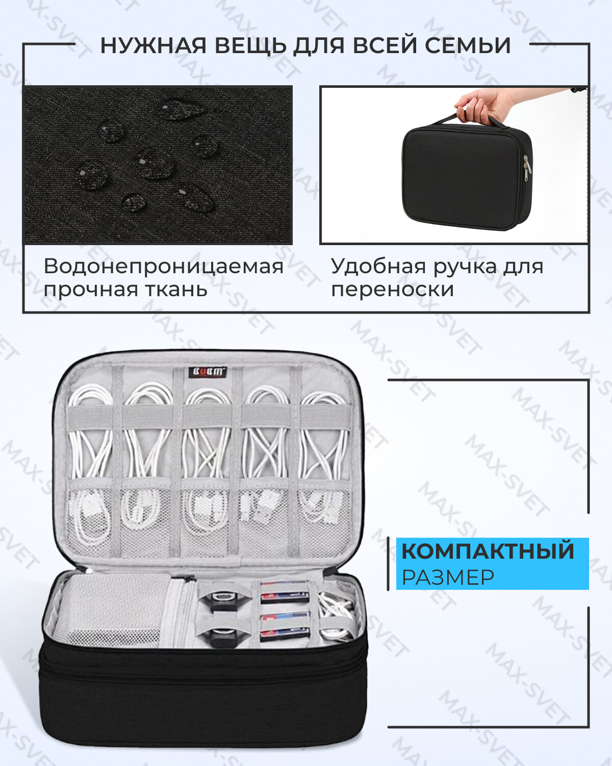 10 цен на Органайзер двухуровневый S-MAX для хранения электроники, гаджетов и проводов, черный