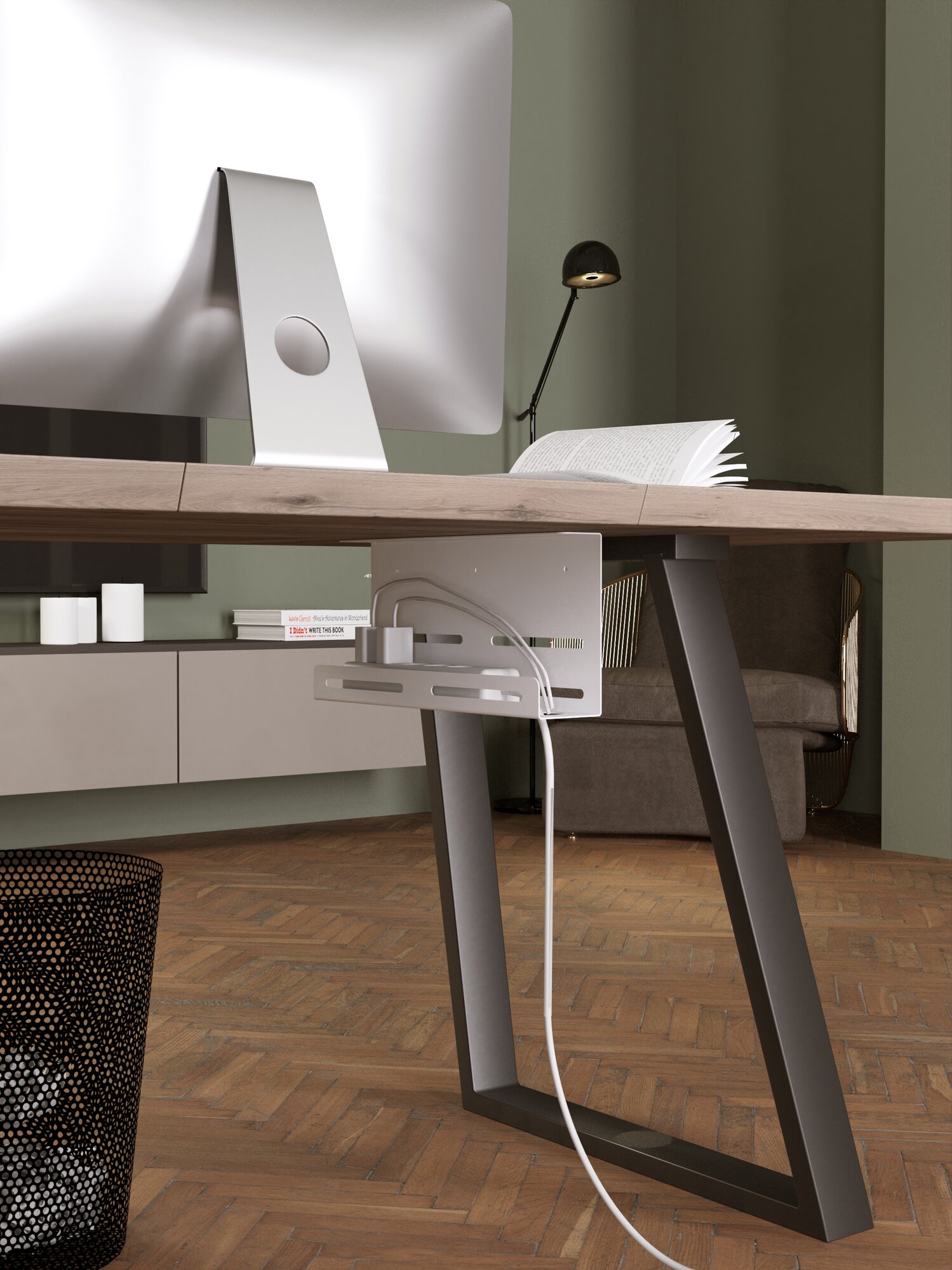 Подвесной настольный органайзер для проводов, кабелей, зарядок с держателем сетевого фильтра или удлинителя TEMPACHE, 40х18х8 см, белый информация: