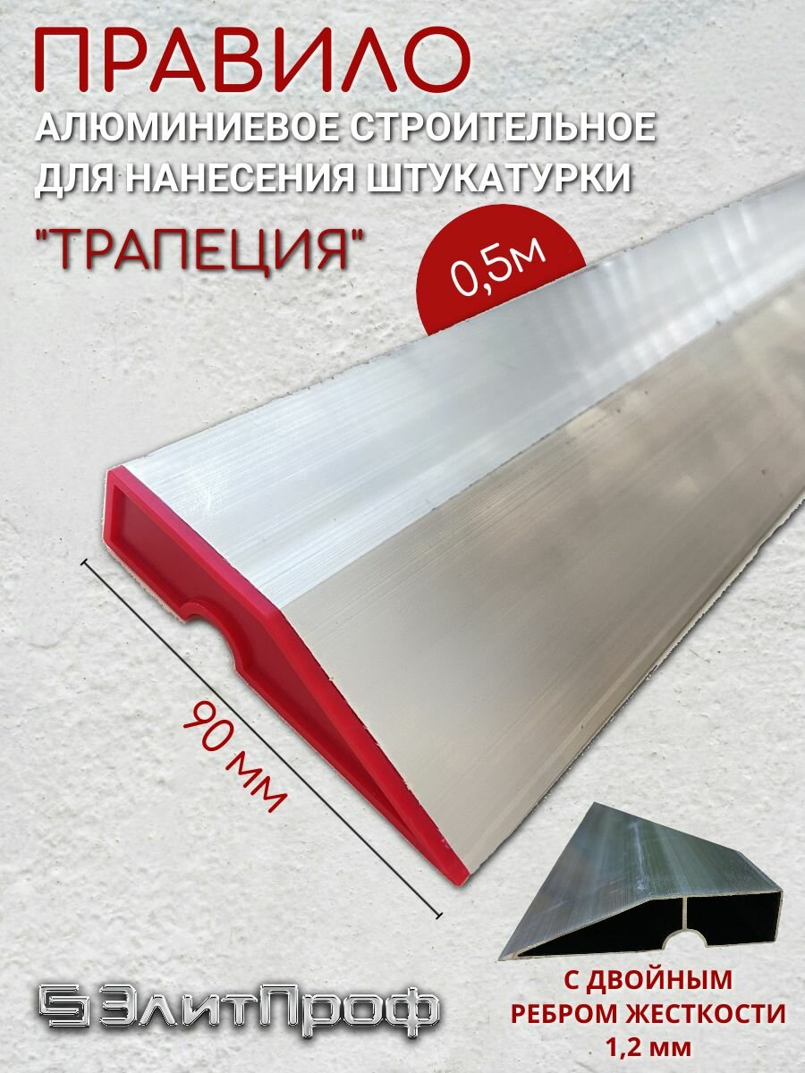 Правило алюминиевое с одним ребром жесткости ЭлитПроф 18,6х90х500 мм (с заглушками) информация:
