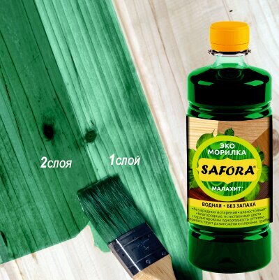 10 цен на Морилка для дерева водная SAFORA, цвет малахит, зеленый 500мл