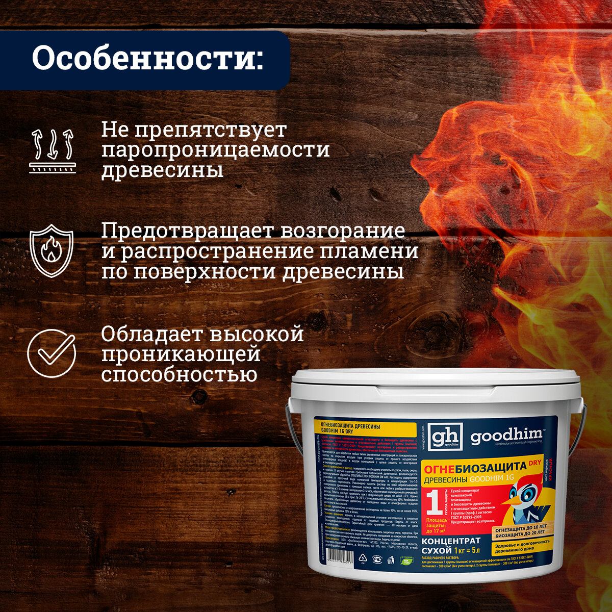 Огнебиозащита 1 группы (Сухой концентрат) GOODHIM 1G DRY, 5кг (вед.)