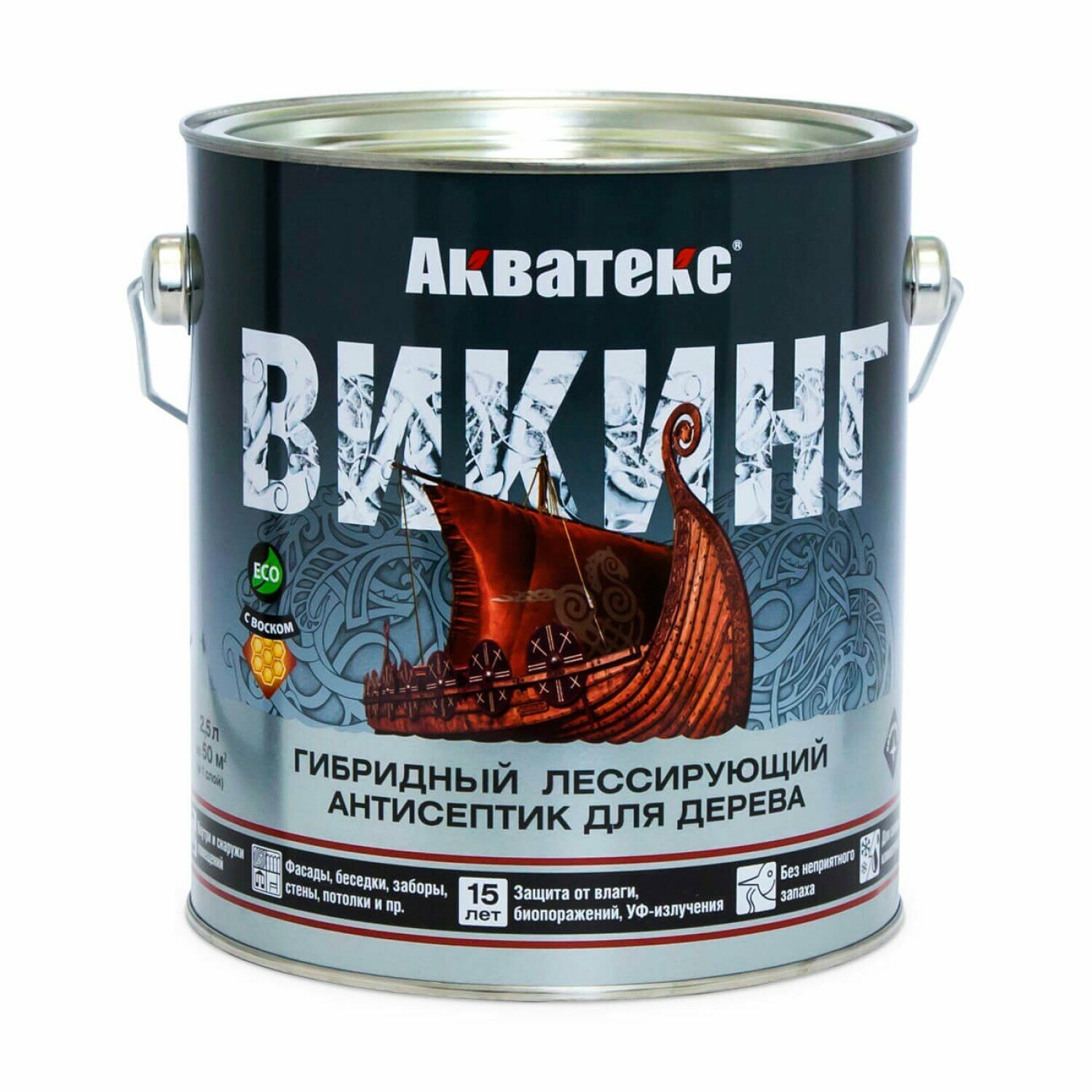 Антисептик лессирующий гибридный для дерева Акватекс Викинг полуматовый (2,5л) дуб информация:
