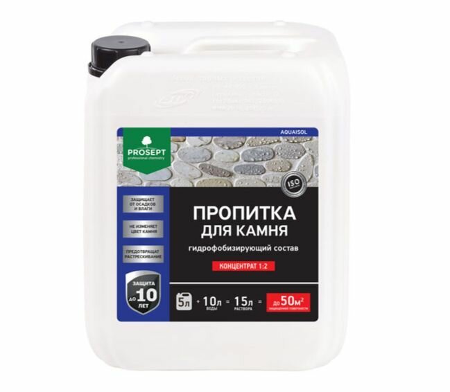 10 цен на Пропитка для камня PROSEPT AQUAISOL концентрат 1:2 5 литров + перчатки