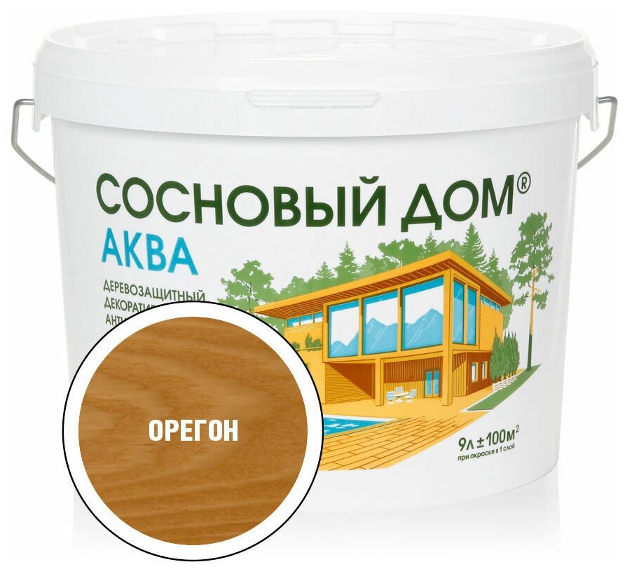 Сосновый ДОМ аква Декоративный деревозащитный антисептик орегон (9л)