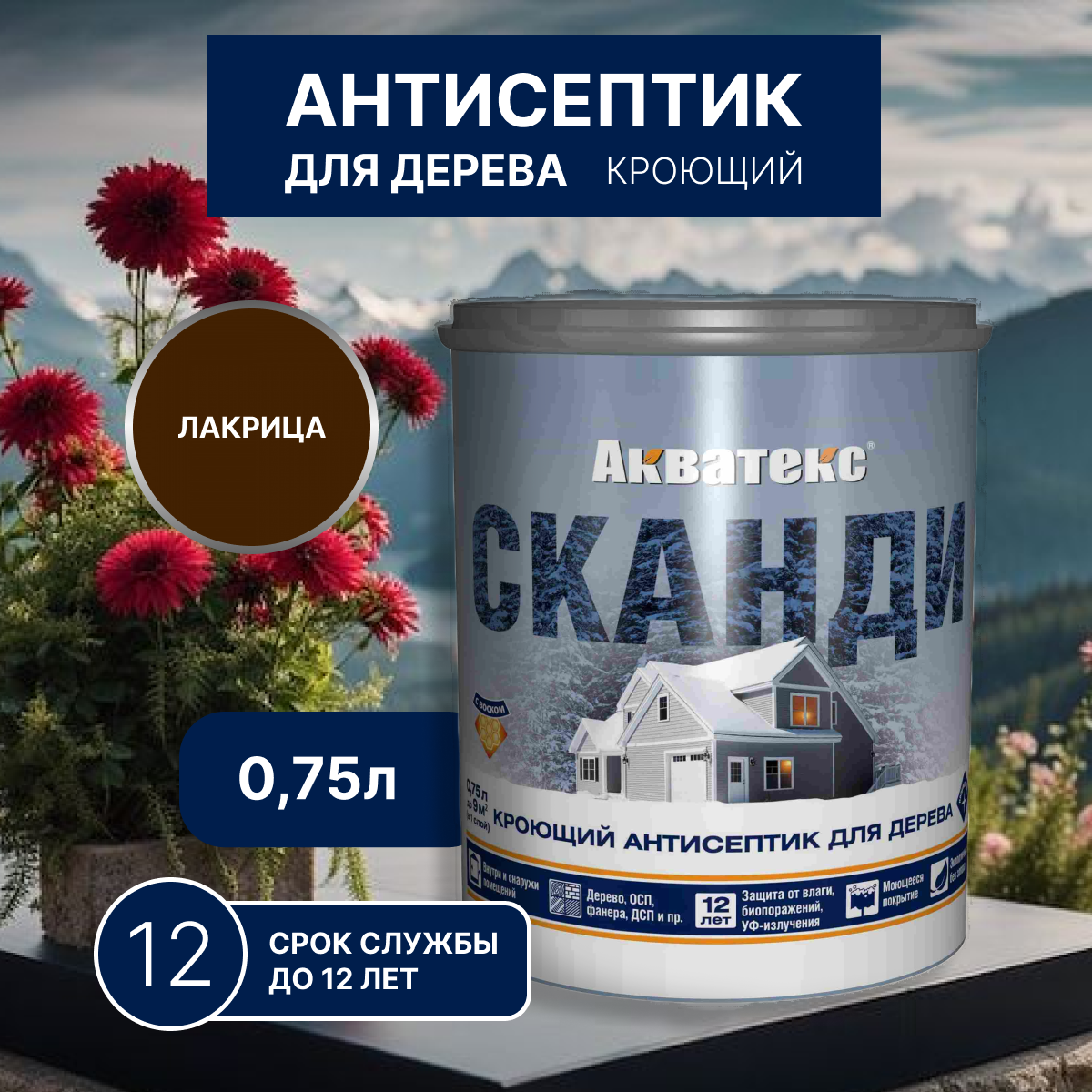 Пропитка для дерева кроющая лакрица Акватекс Сканди 0,75л информация: