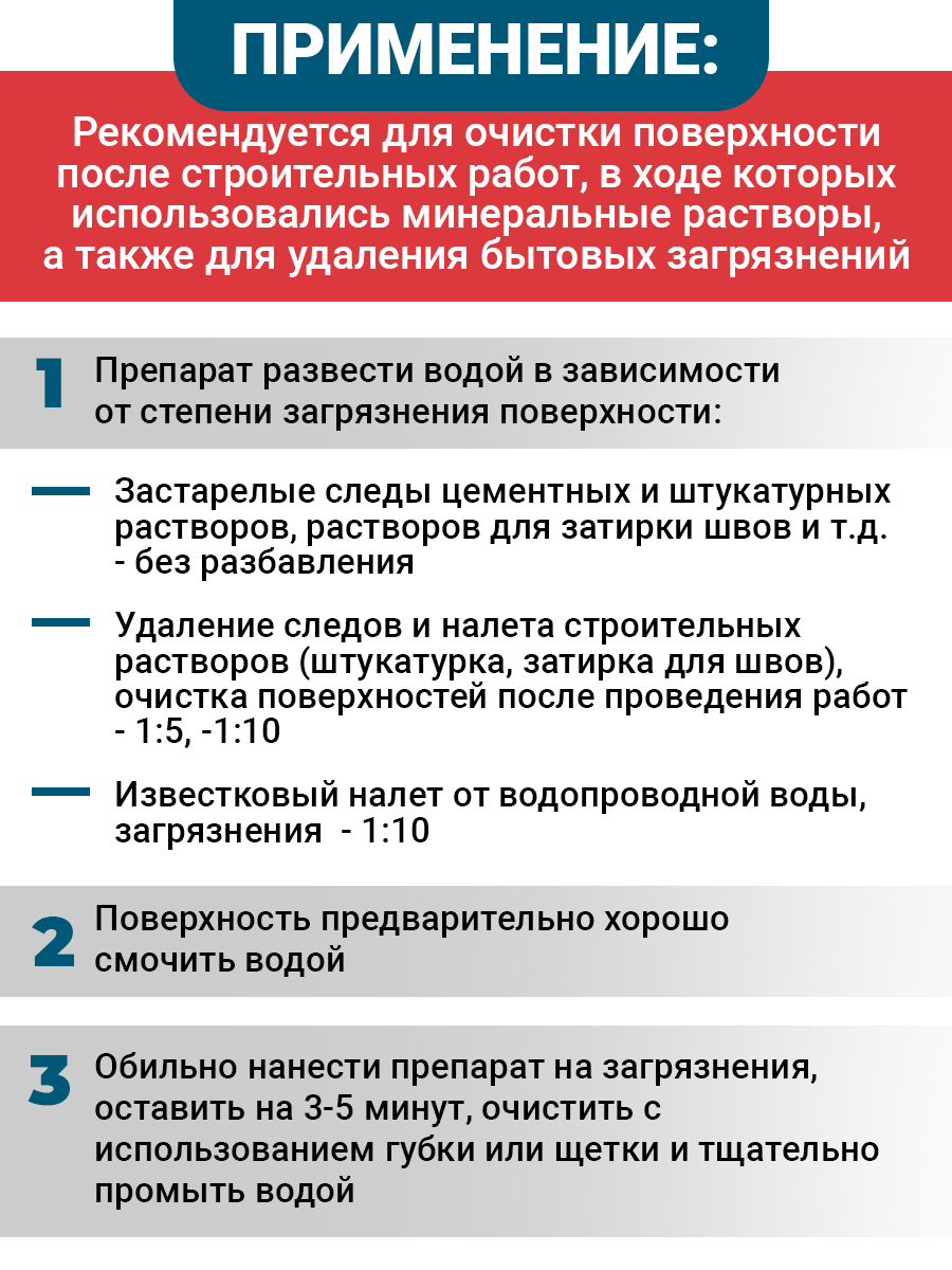 | Дополнительная информация | Избегать контакта средства с поверхностями, не требующими обработки |