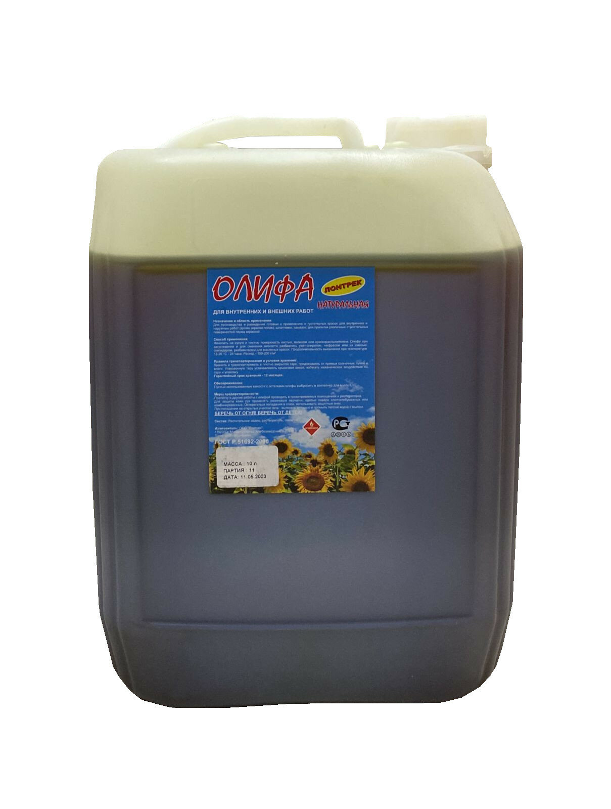 Олифа натуральная , ГОСТ Р 51692-2000, 10 л, Лонтрек информация: