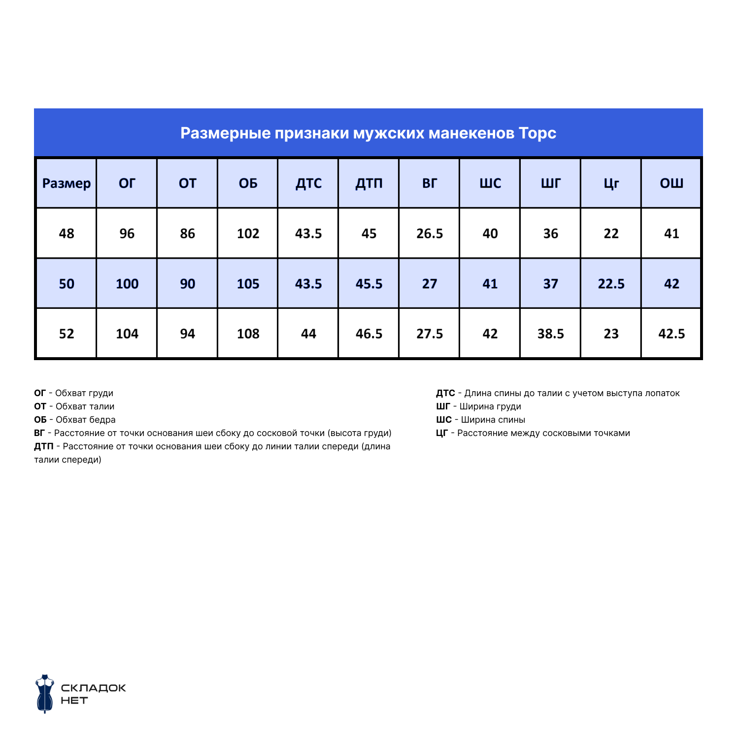 | Объем груди | от 96 до 96 см |