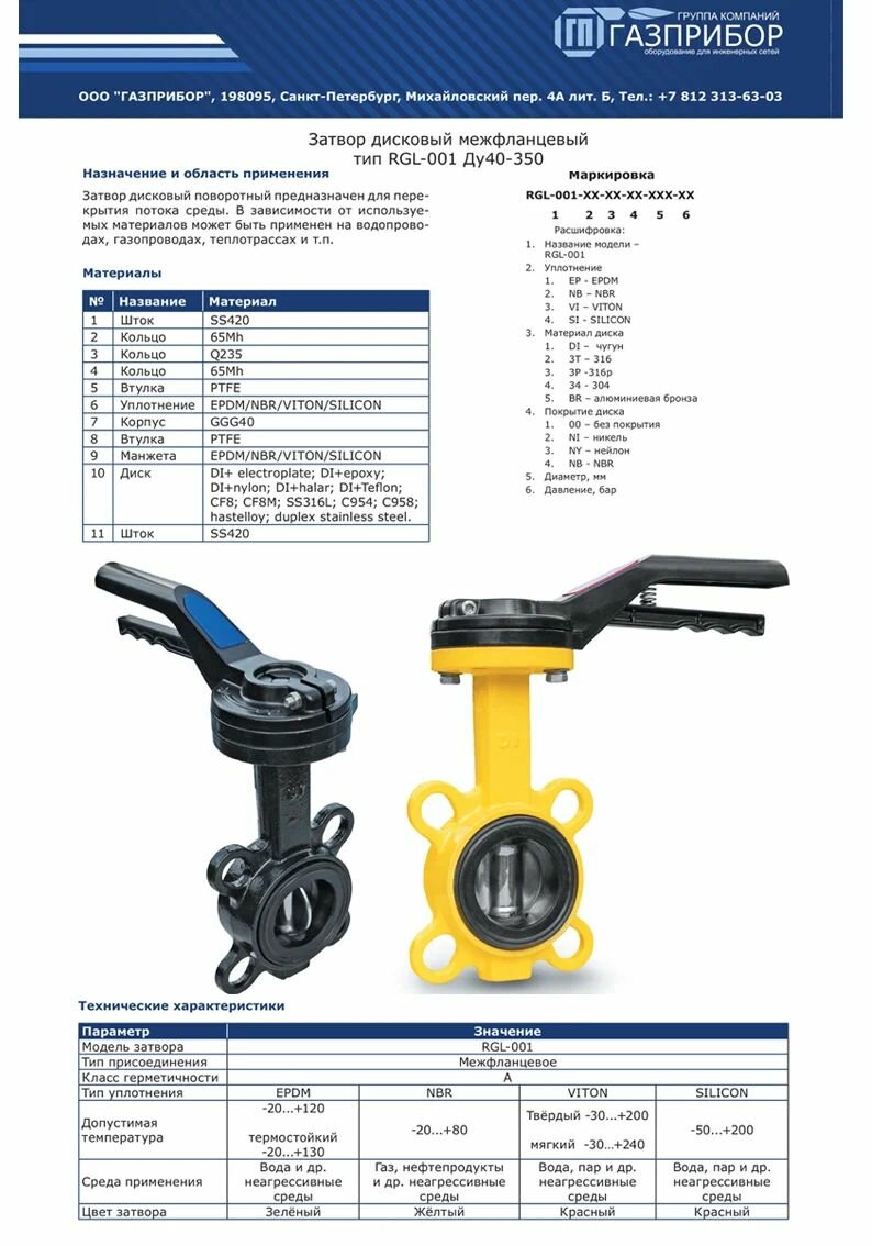 Отзывы на Затвор дисковый поворотный; Диск- Чугун с Ni-покрытием, Ду150 EPDM; RGL-001 Тмакс-20-120C