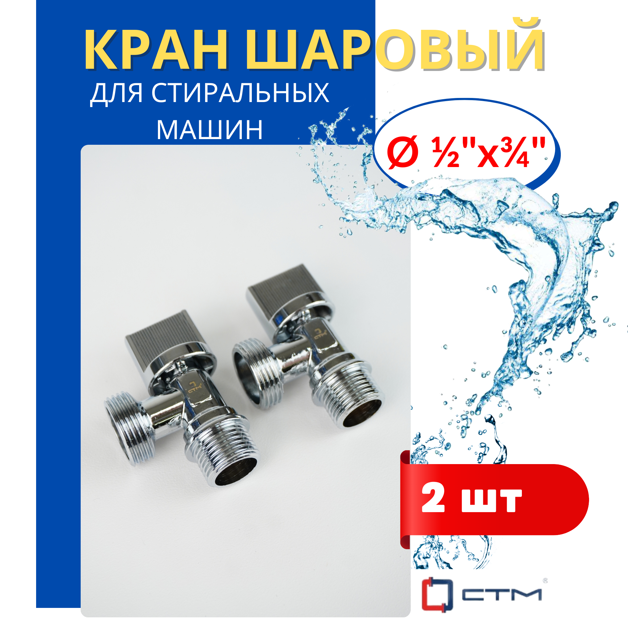Кран шаровый латунный угловой 1/2х3/4 для стиральных машин (СТМ) 2шт. информация: