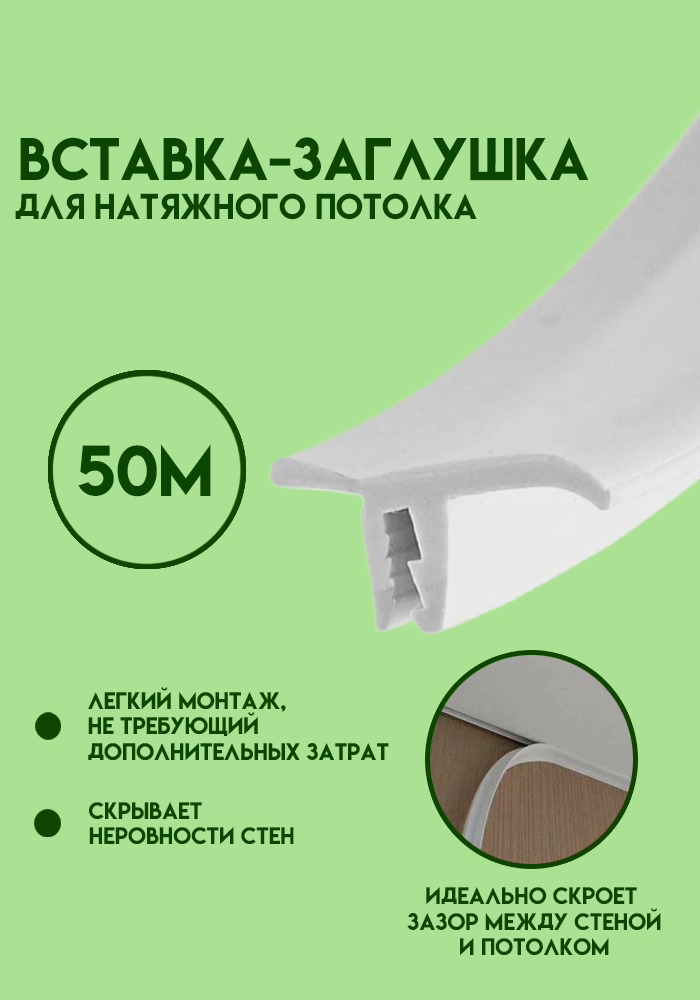Вставка заглушка для натяжного потолка, плинтус потолочный, маскировочная лента 50 м информация: