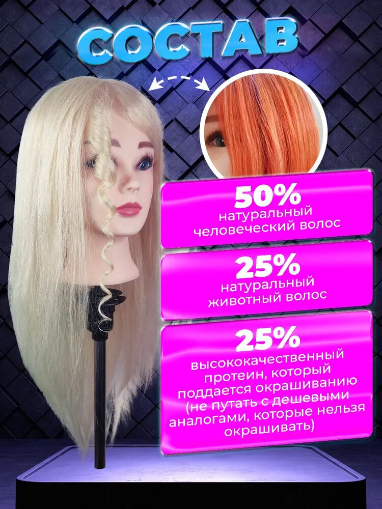 10 цен на Манекен для парикмахера с натуральными волосами 75% блондинка