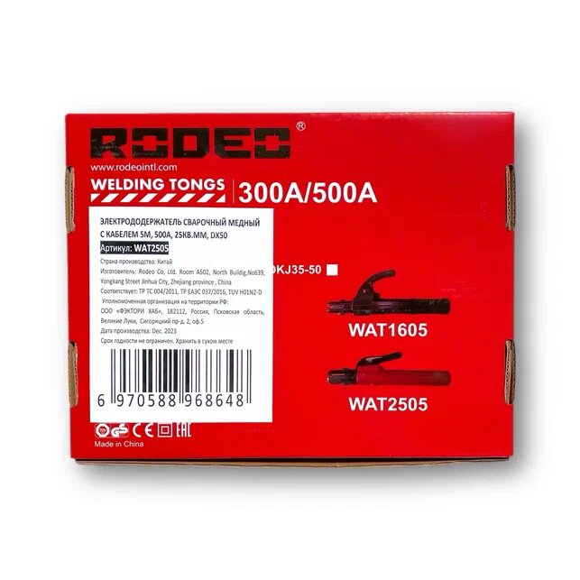Электродержатель сварочный медный с кабелем 5м, 500А, 25кв.мм, DX50 Rodeo WAT2505 информация: