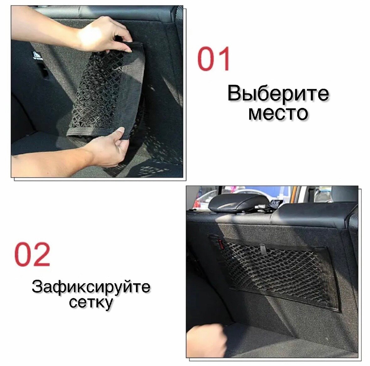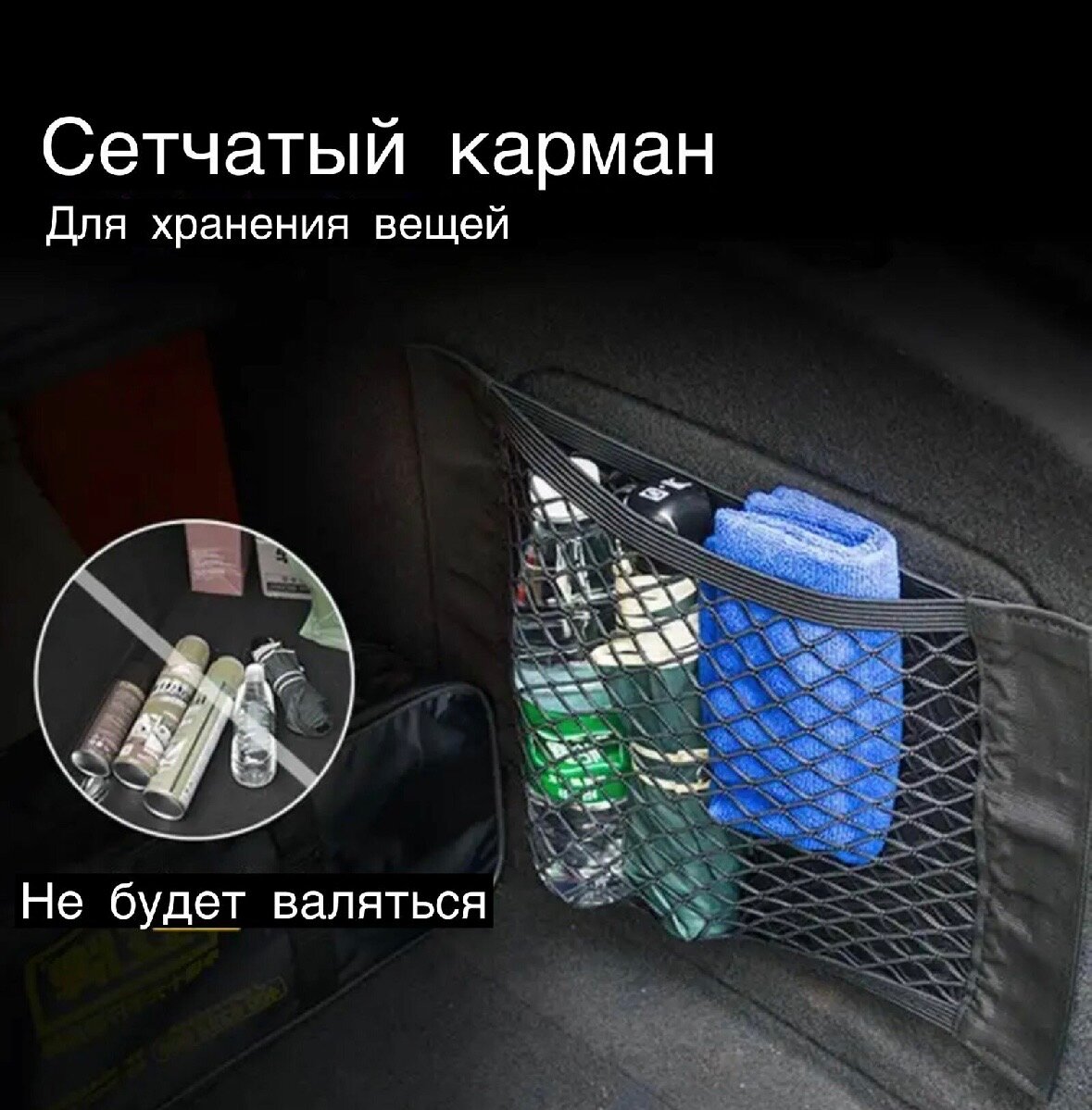 Карман в багажник на липучке универсальный / сетка органайзер в автомобиль / держатель крепление в машину