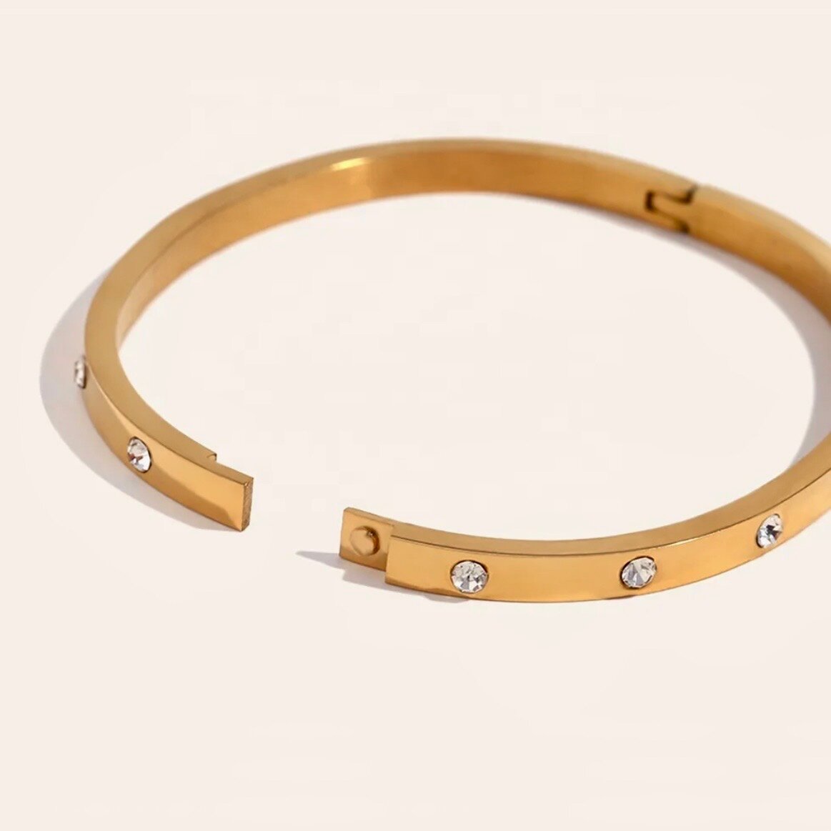 Жесткий браслет SORONA, кристаллы Swarovski, циркон синтетический, фианит, кристалл, Swarovski Zirconia, циркон, 1 шт., размер 6 см, размер one size, диаметр 5.7 см, золотой 2 173 ₽