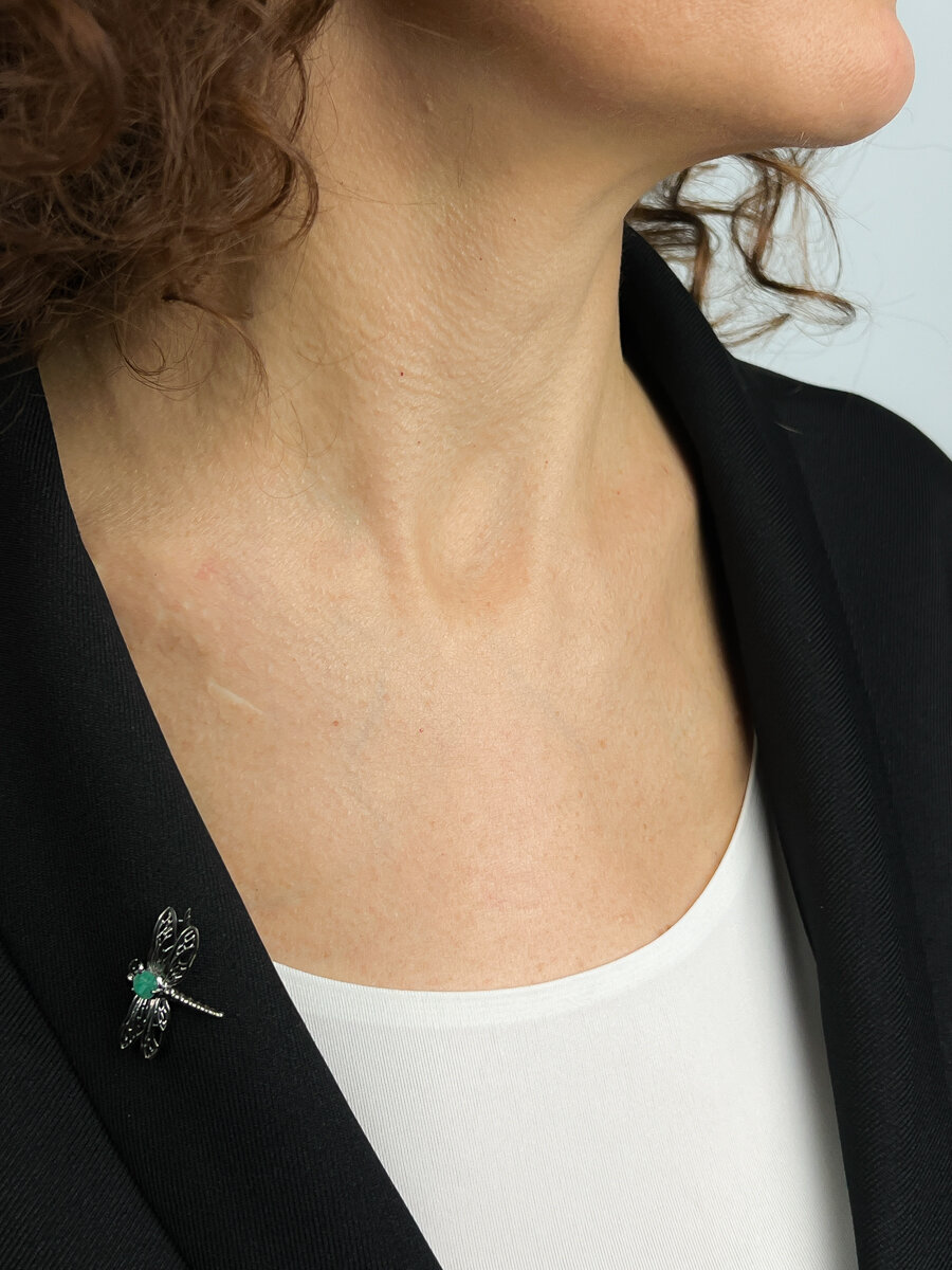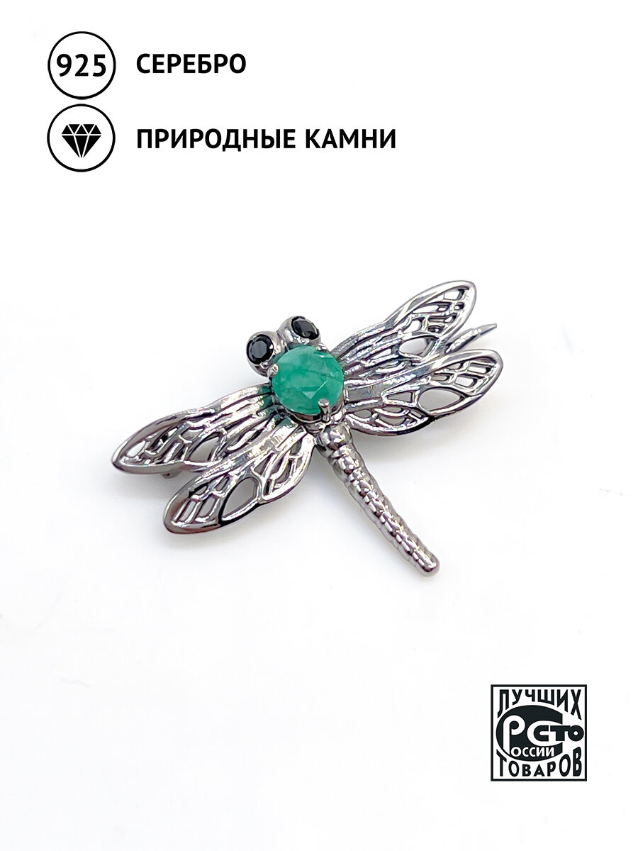 10 цен на Брошь из серебра и бронзы с природным уральским изумрудом и шпинелями, Кристалл Мечты