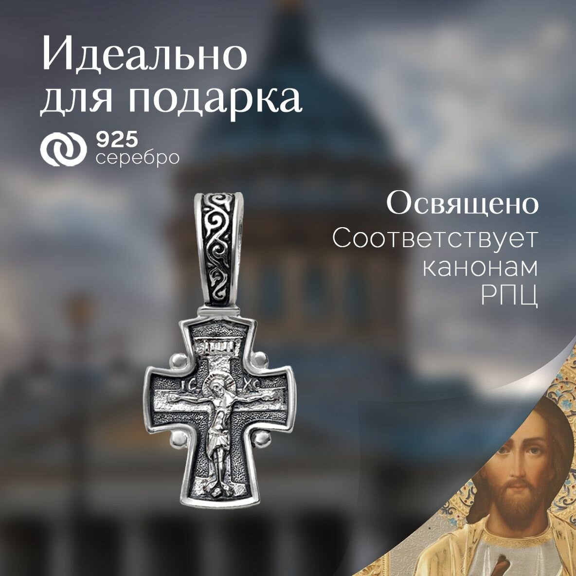 | Название модели | Православный, серебряный 925 проба, с Распятием Иисуса Христа и Молитвой "Спаси и Сохрани". |