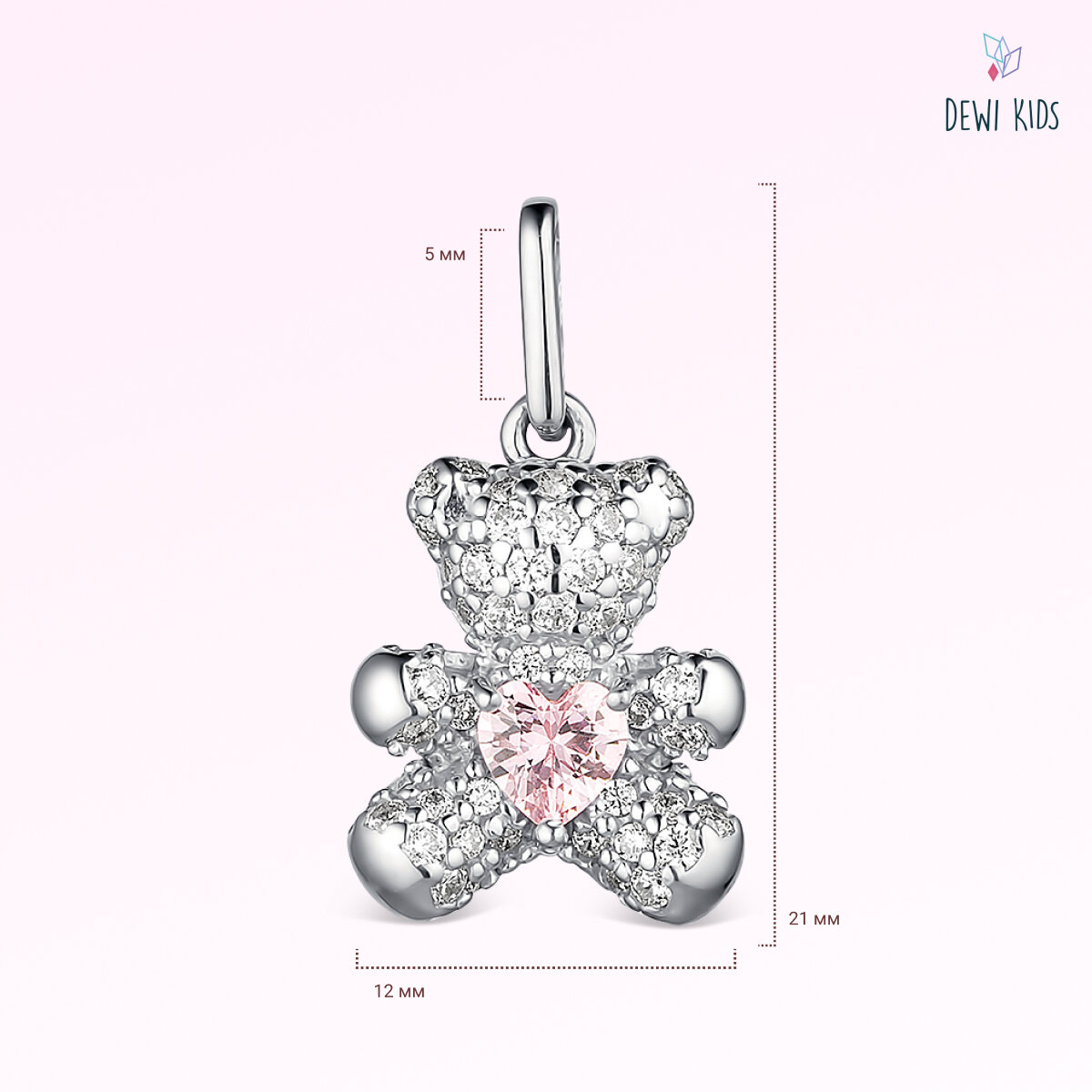 Детская подвеска "Мишка с сердцем" из серебра 925 пробы с фианитами DEWI KIDS. информация:
