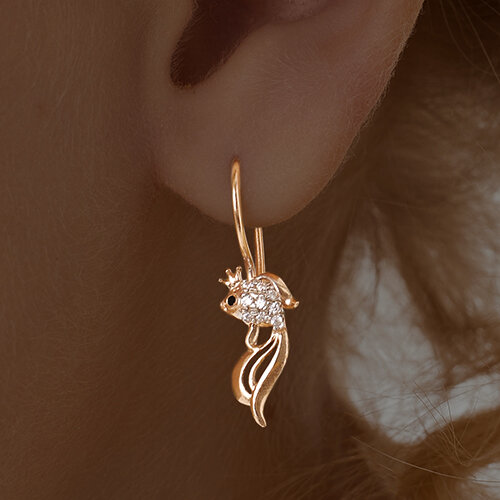 10 цен на Серьги детские ювелирные серебряные 925 пробы в позолоте Рыбки, ср.вес изделия 1,0 гр, арт. 2829086/9п.