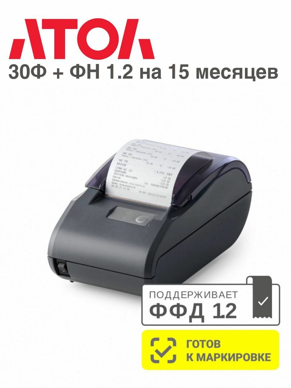 Онлайн касса, кассовый аппарат АТОЛ 30Ф + ФН 1.2 на 15 месяцев информация: