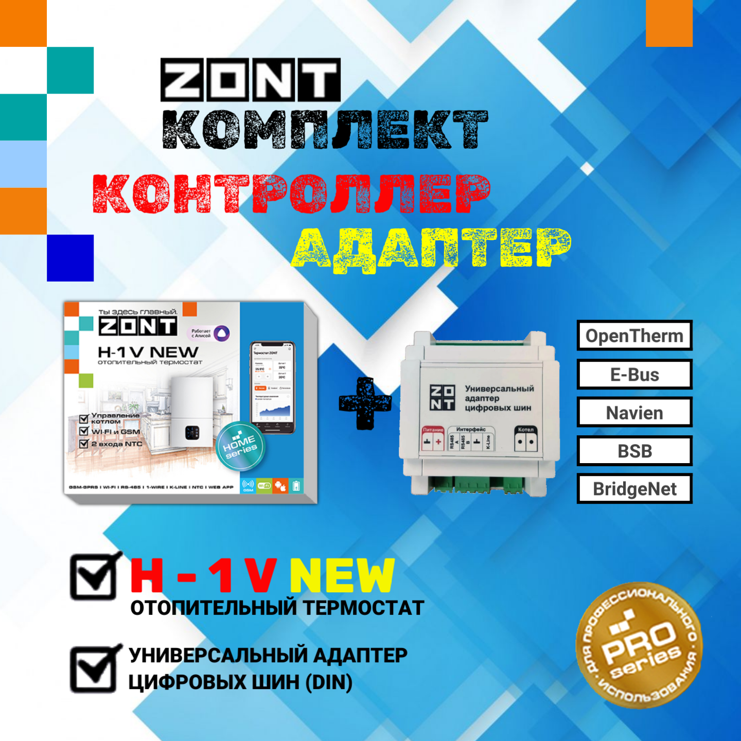 ZONT H-1V NEW Отопительный GSM/Wi-Fi термостат на DIN-рейку ML00005890 + Универсальный адаптер цифровых шин (DIN) информация: